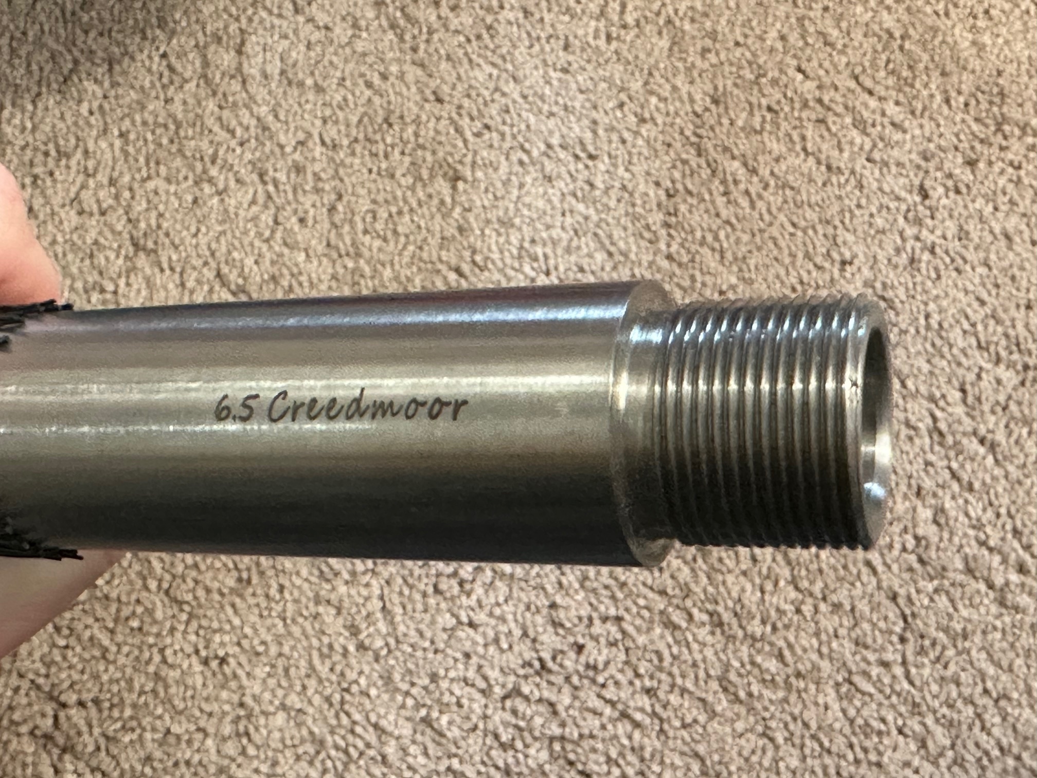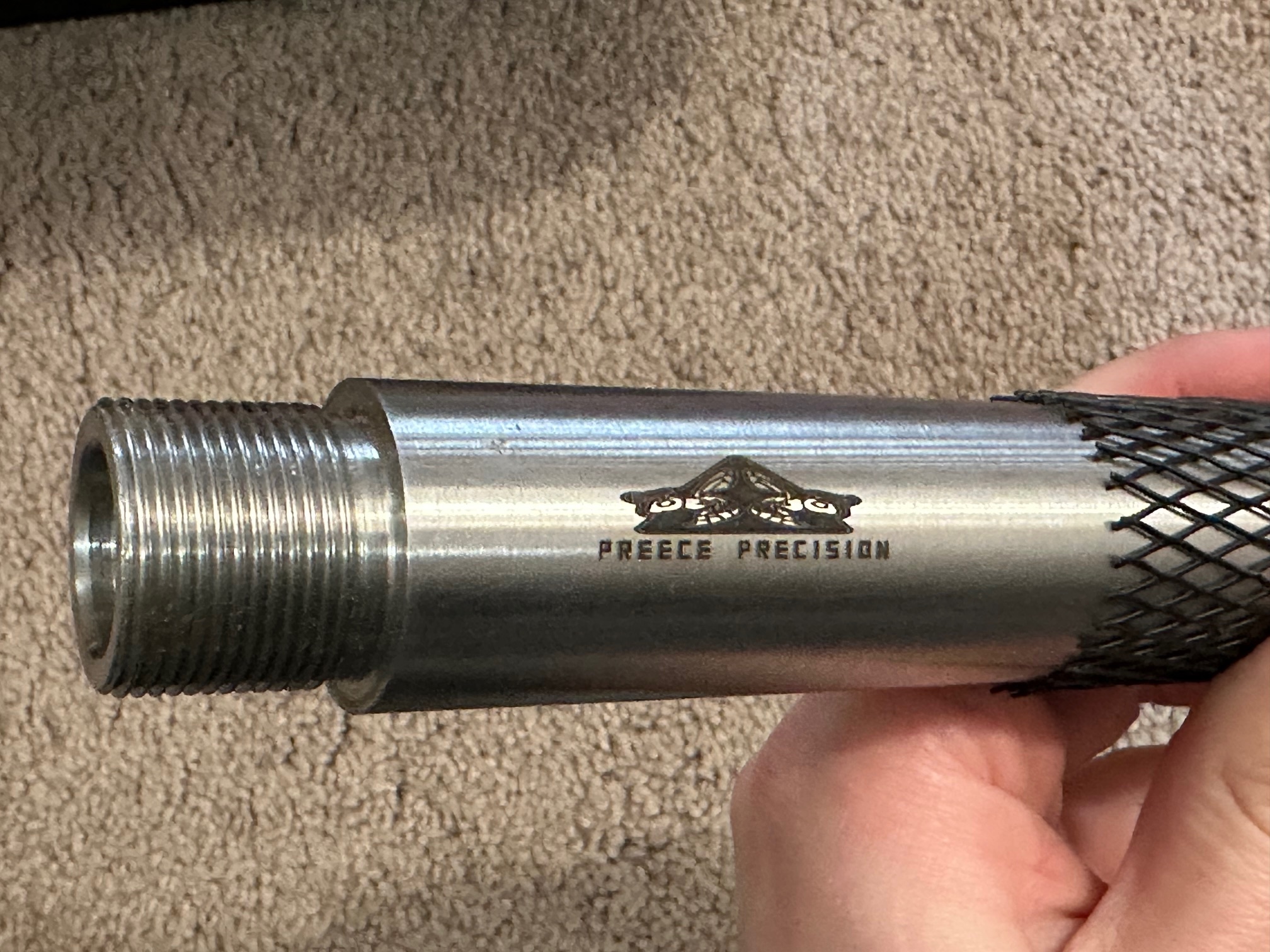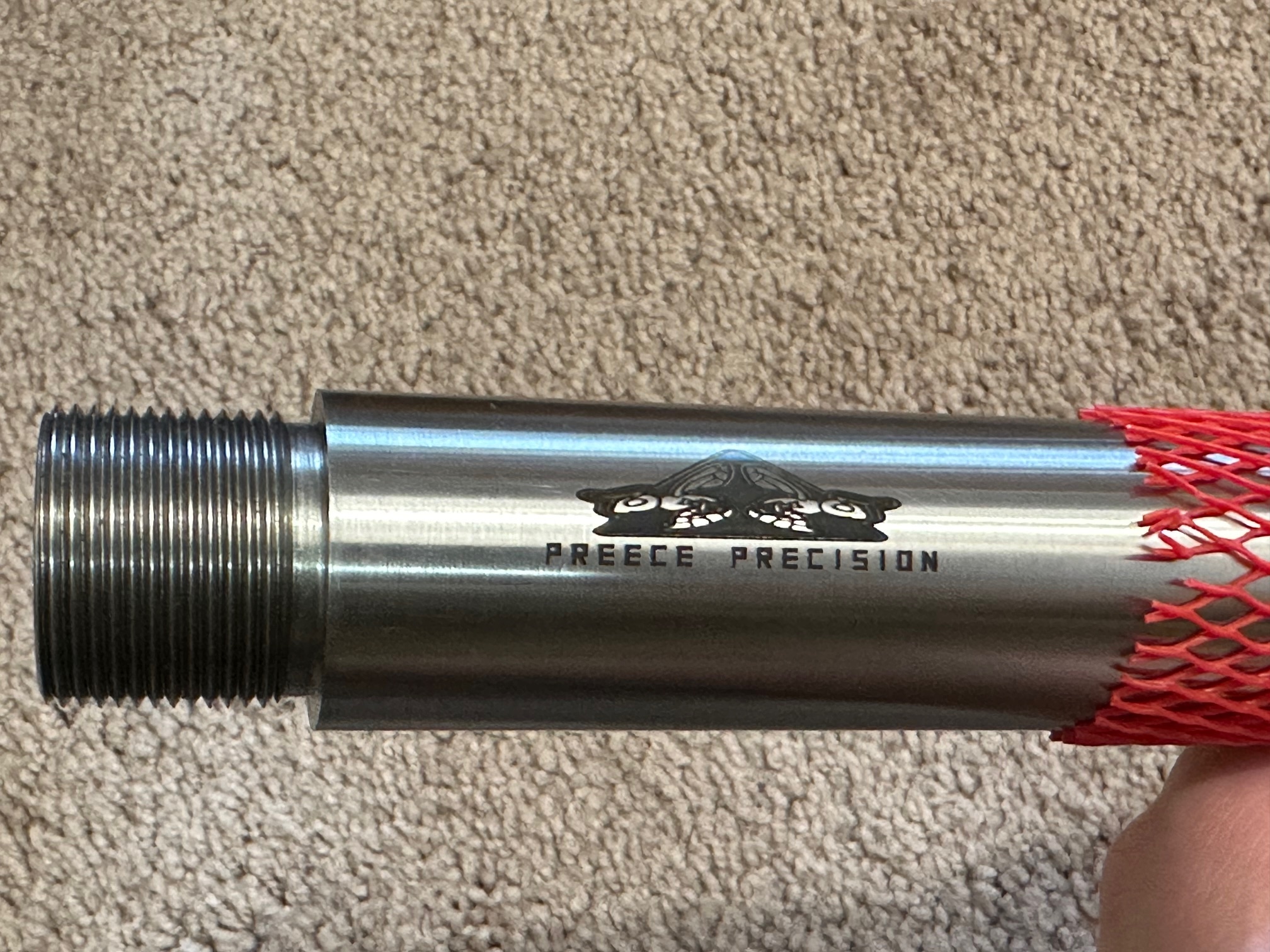 Next is a Preferred Barrels blank for Lone Peak Razor/Fuzion. It is 26" long, MTU contour, muzzle threaded 5/8-24 and chambered in 6.5 creedmoor by renowned Garret Preece of Preece Precision. This one has 560 rounds on it, mostly factory ammo. Asking