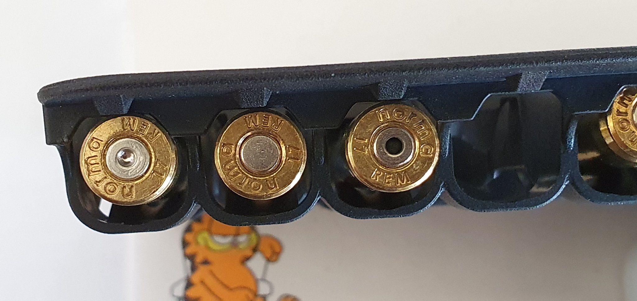 Photos shows the one 'pierced' primer I had along with another Norma and a Remington fired case together with live ones of each