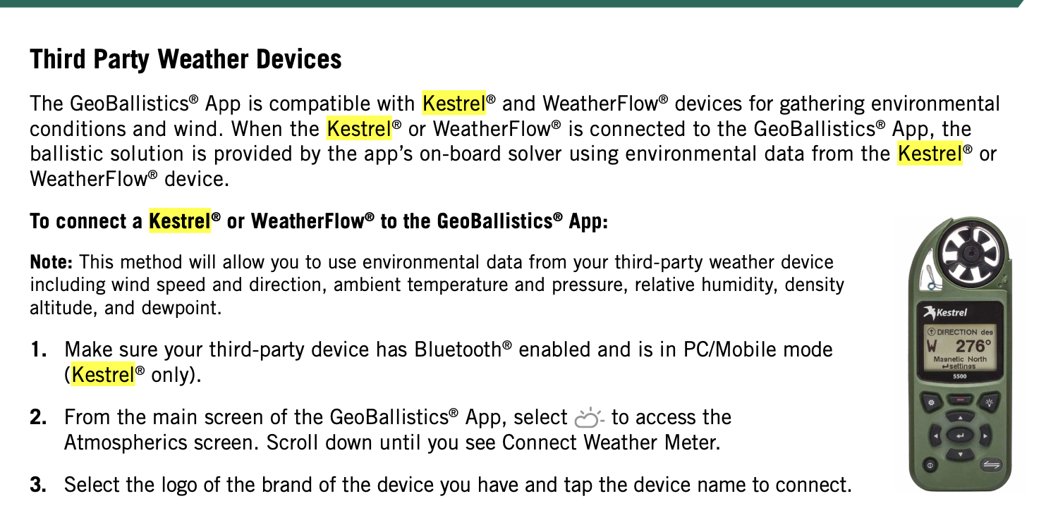 This is what I was looking for. It eludes to, but is not clear it will use my connected kestrel as the ballistic solver.