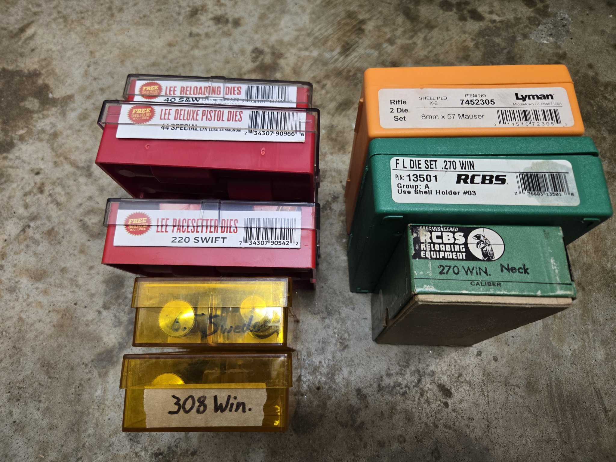 The 220 Swift dies have not been used and the 10/40, 44 Spec/Mag and 8x57 dies have only seen a couple hundred rounds.