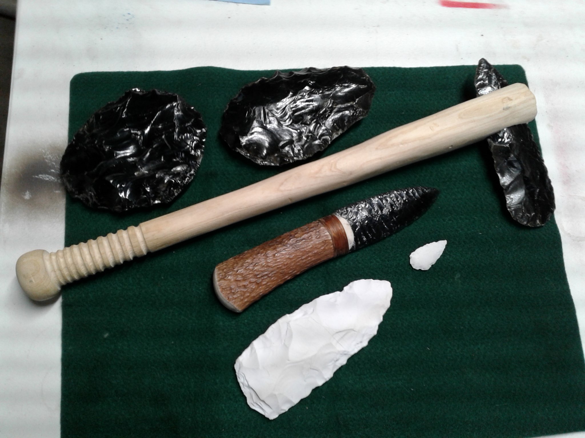 Knife is obsidian set in elk horn, i didnt make that one and maybe someday will be able to knap stone that well.