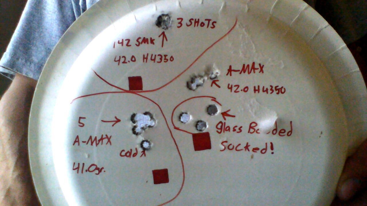 Started off with a fouler, then group 1 and 2 were unsuppressed FGMM. Group 3 was my reloads unsupressed. Then I put on a suppressor and shot a fouler. Group 4 and 5 were suppressed FGMM, group 6 was suppressed reload ( I pulled one shot ½ inch to the left, I called it before even looking at the target and that’s exactly where it went). Group 7 and 8 are suppressed FGMM. Then groups 9 and 10 are unsuppressed FGMM (forgot to put turrets back down to unsupp zero on group 9). Some of those are 3 shots and some 5 shots.
