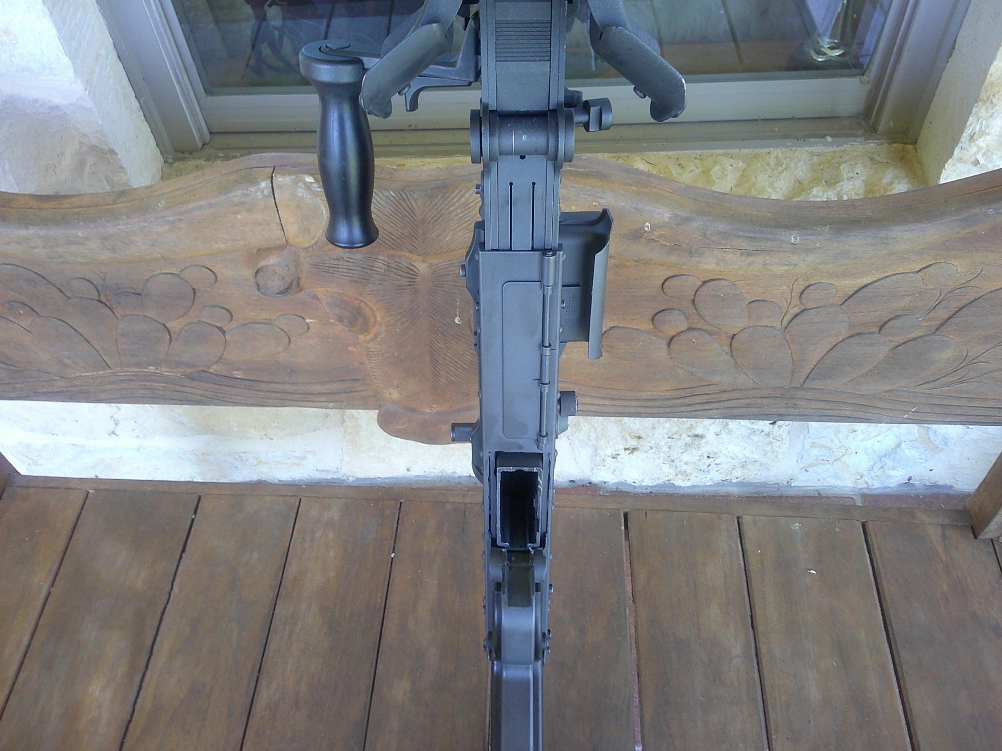 8. Feed cover not designed to be readily opened. It can be opened by removing a set screw on the Picatinny rail. Clean thru muzzle or use a bore snake. Gun is not meant to be disassembled. Clean and lube bolt in place with Gun Scrubber and Ballistol.