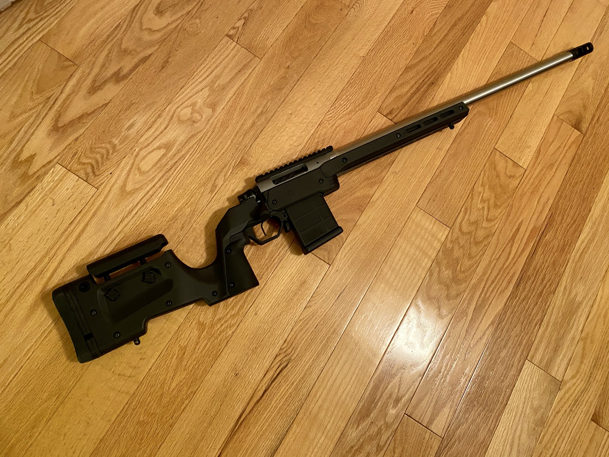 This sale is for the action, barrel and brake only. No stock and no trigger. Up for sale is a Mack Bros Evo SS barreled action in 6GT. The barrel is a 7.5 twist 5R 26” Benchmark MTU contour chambered by Crown Ridge Barrel Works and is finished off with a PVA Jetblast muzzle brake. The action and barrel have about 60 rounds on them and shot very accurately with 109 Bergers. The action has a few small marks on the bottom from being mounted in the stock and the barrel nut has a few small marks from the wrench.