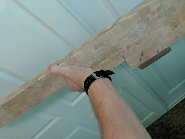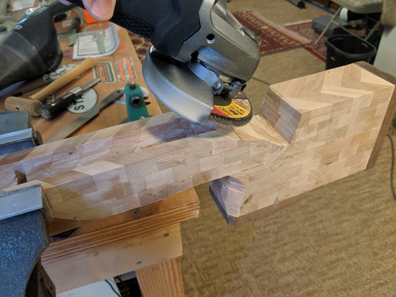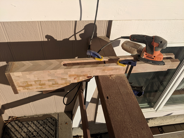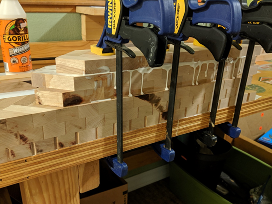When I started doing a mock-up before gluing the boards together, I realized I should alternate the orientation of the starting pieces. I needed to do this because I did not want any of the glue joints to be directly overlapping another glue joint. This also meant that instead of a chess-board pattern, I would have a staggered effect look along the sides. That was not exactly what I wanted, but for the sake of structural soundness, it was the best option. And it would still look pretty sweet!