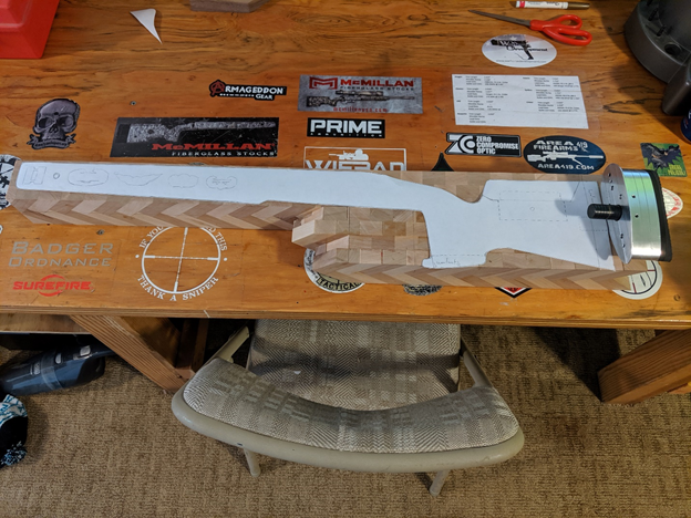 This entire project merely started as an idea rolling through my mind in the summer of 2019. I was enjoying a few days with some long-time friends of mine and as usual, my mind drifted toward rifle projects. I wanted to do something completely different than what is normal in the tactical/precision rifle community; I wanted to return to a wooden stocked rifle. But I wanted it to be custom fit to me, not an off-the-shelf fit everybody option. I wanted it to have a look that was unmistakable, eye-catching, and beautiful even in the realm of fancy wood grades. It had to be truly custom, and to be truly custom, I would have to do it myself from start to finish.