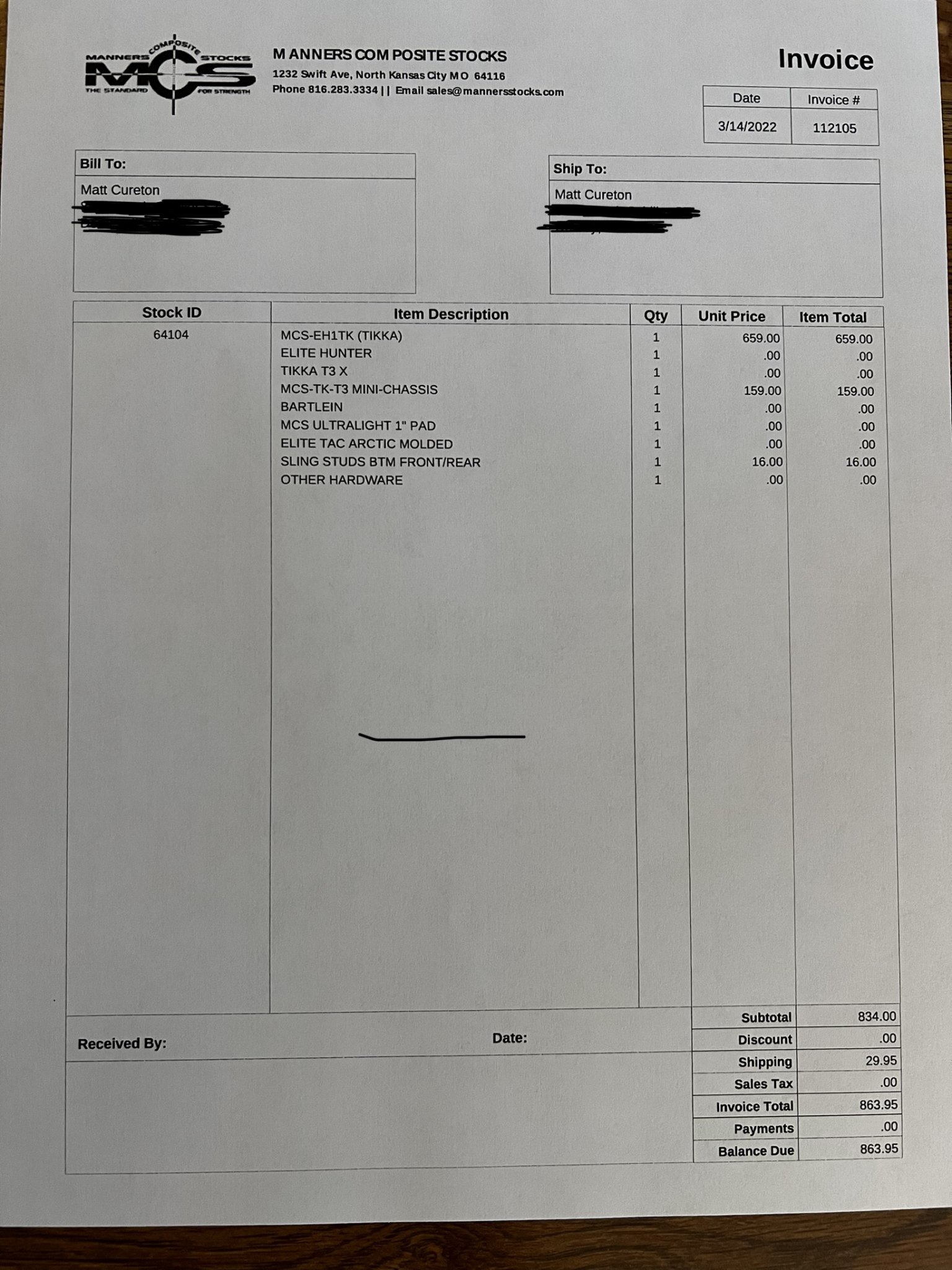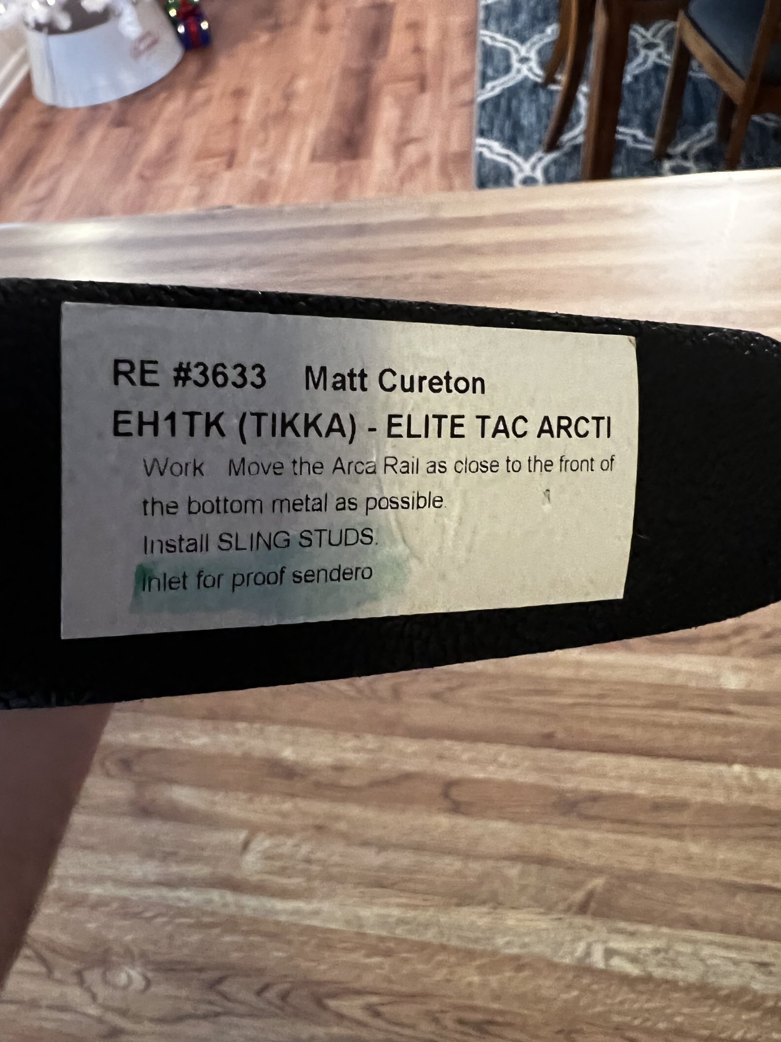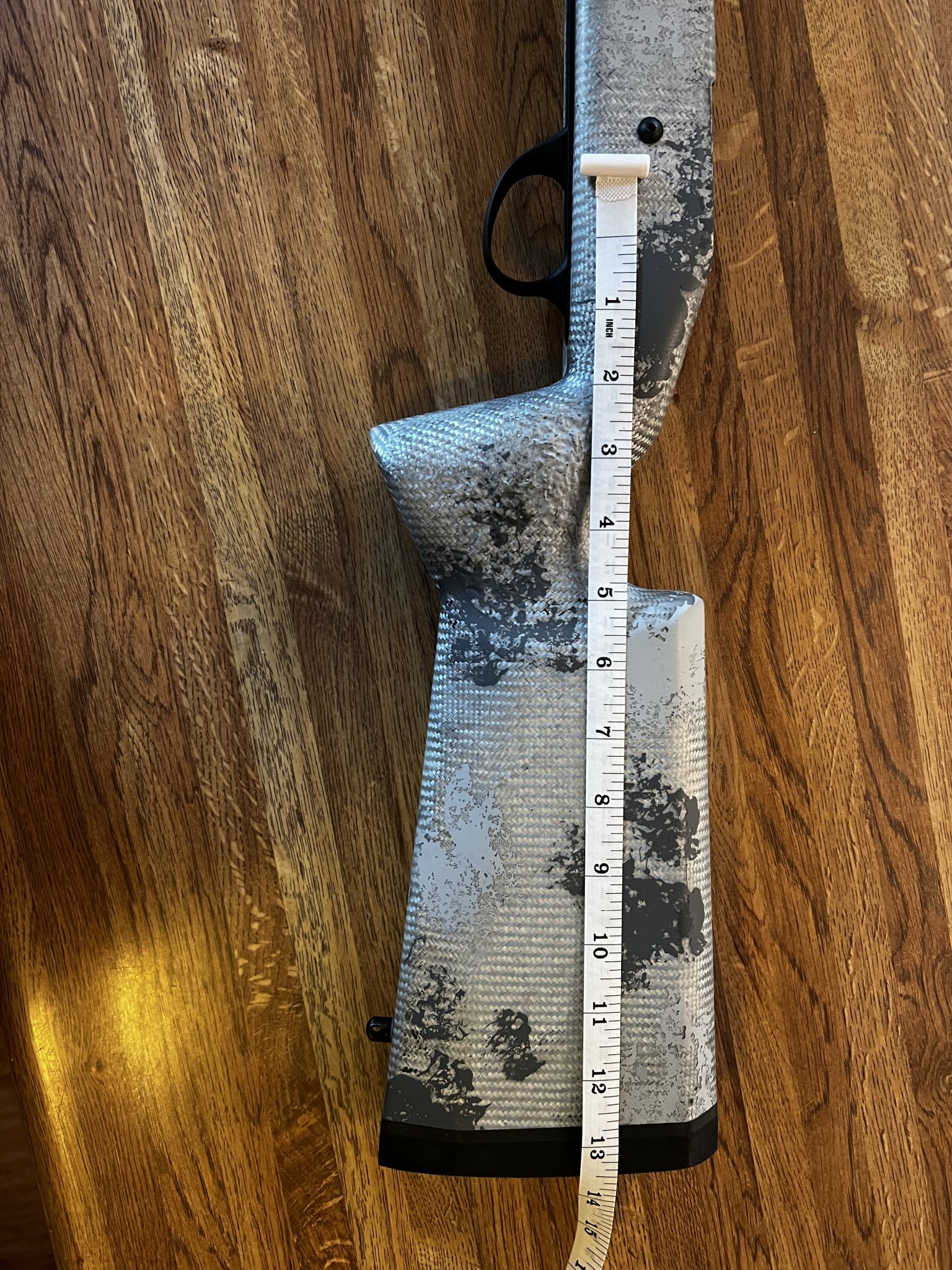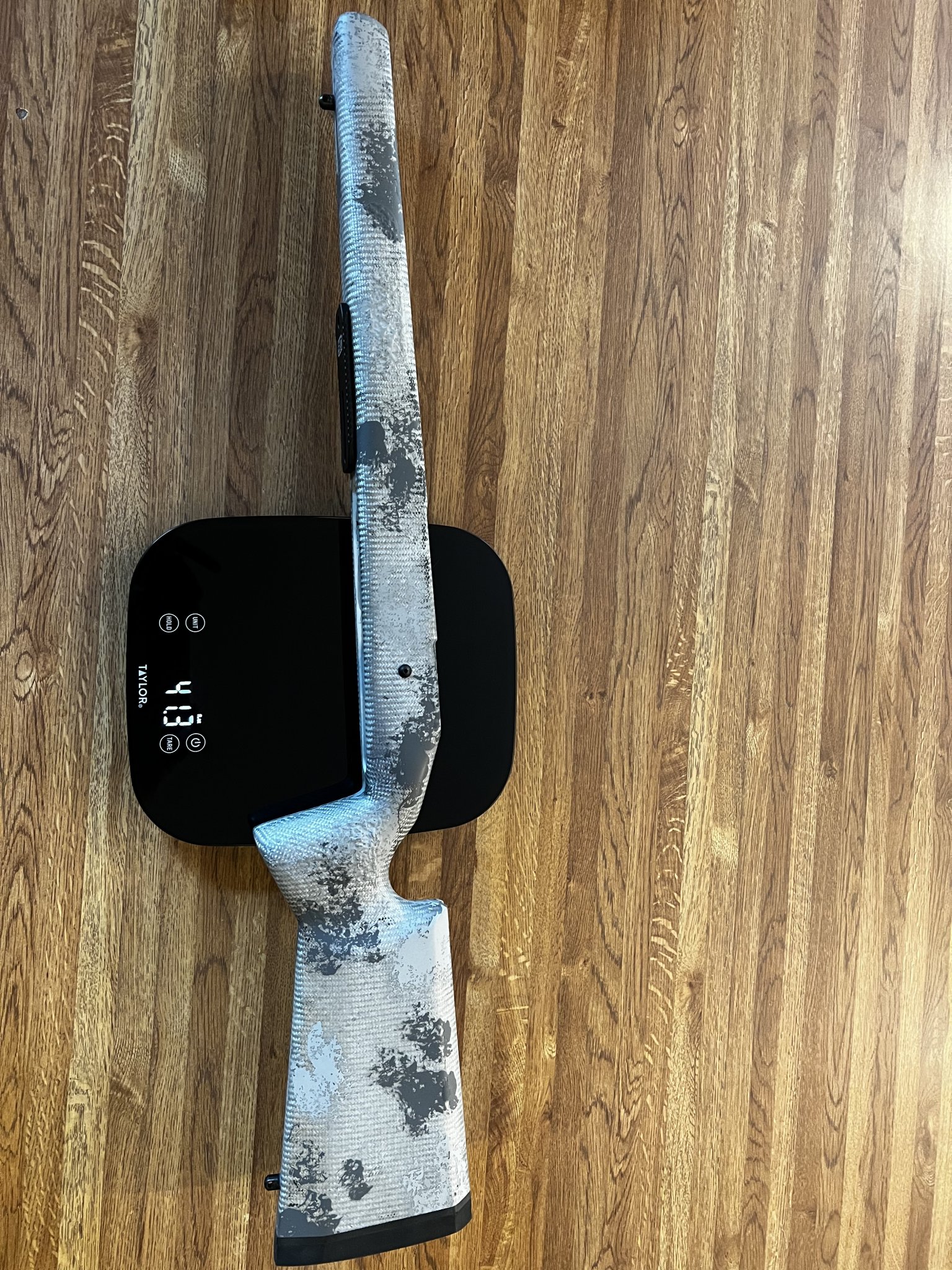 This is a Manners EH1-TK with the mini chassis and factory trigger guard (not included). This stock is finished in the now discontinued Elite Tac Arctic Camo. I’ve wanted to love it but it just doesn’t fit. The looks are killer. I received this stock in March, and it was originally inletted for a bartlein 2b. I sent it back and had them open it up for a proof sendero barrel, as manners “forgot” to install the sling studs.