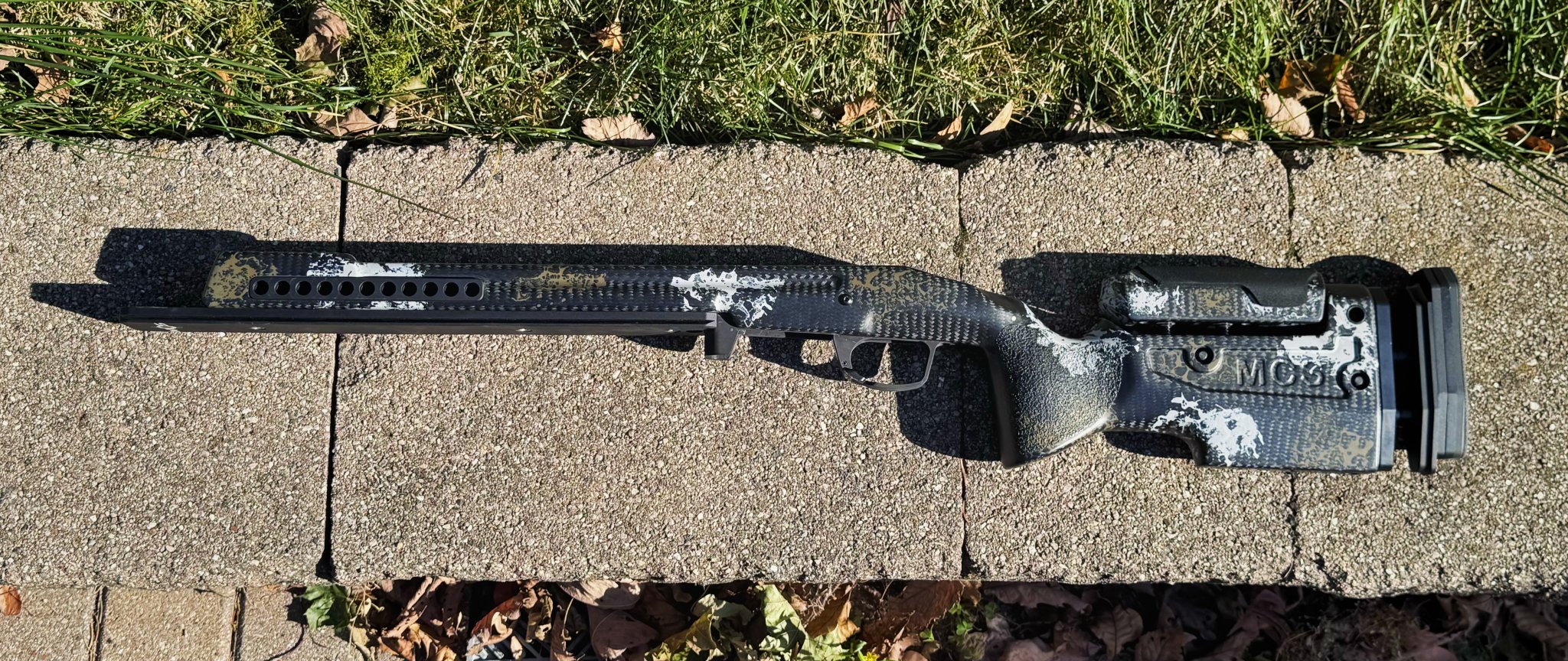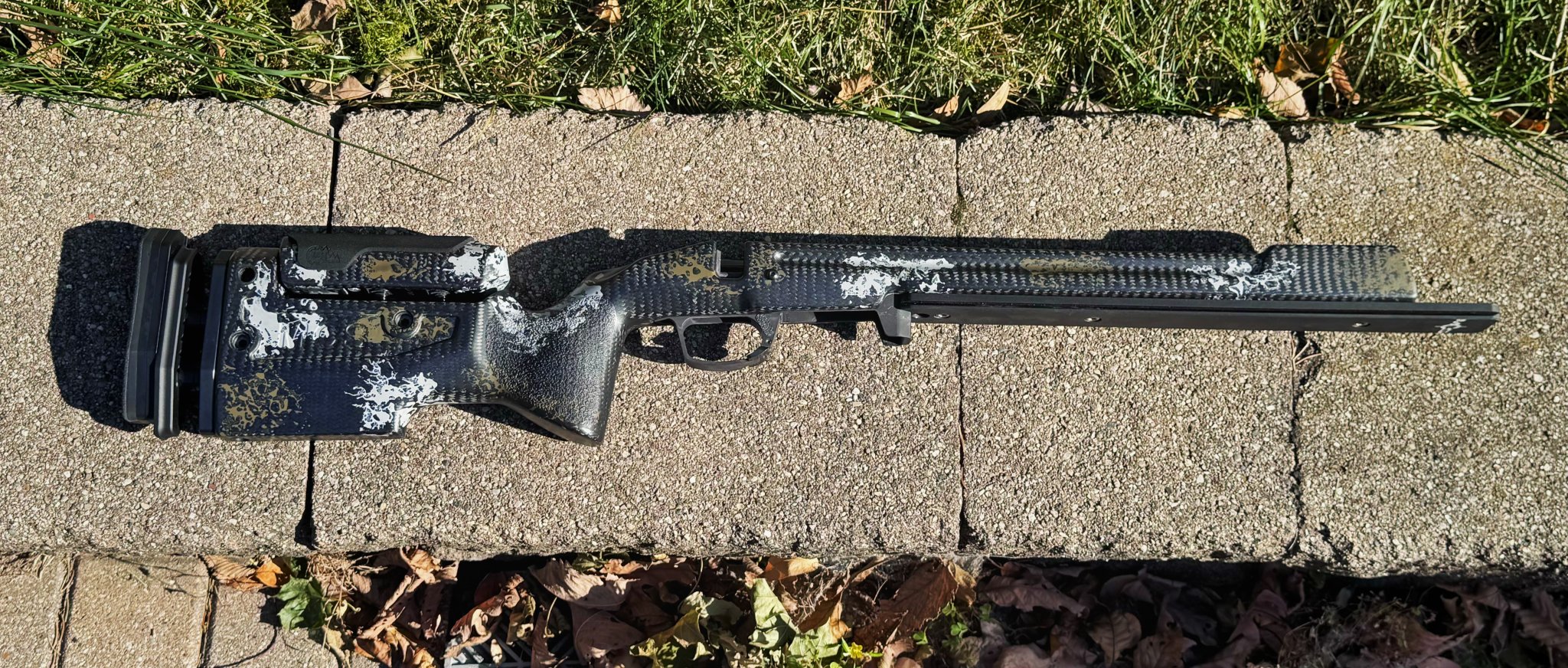Near-new, excellent condition Manners PRS-TCS in Elite Tommy Bahama camo for R700 SA w/ mini-chassis, full arca rail with two forend weights, adjustable buttstock with spacers and one weight, Sikes Rail & Clutch, and adjustable cheek piece.