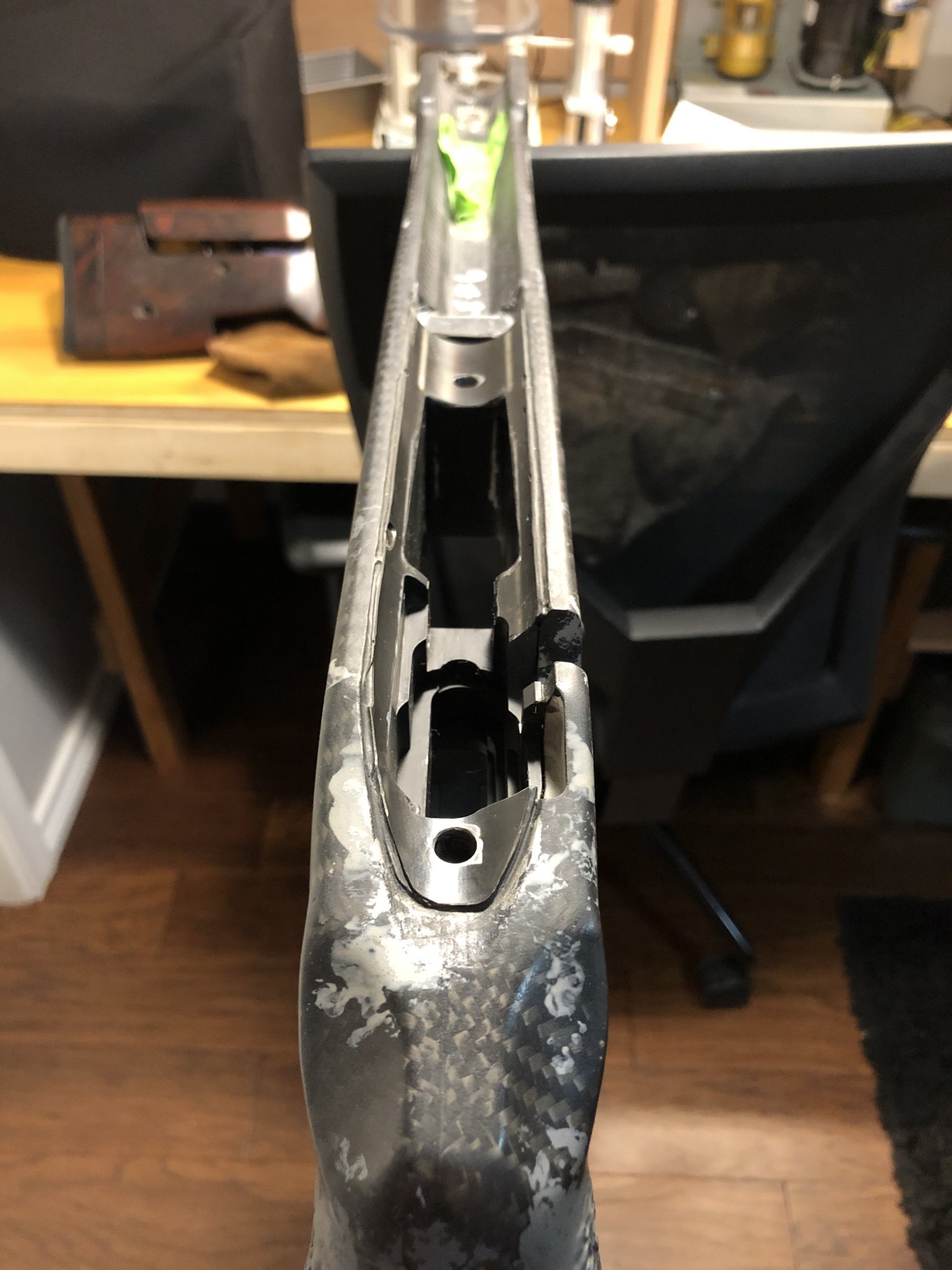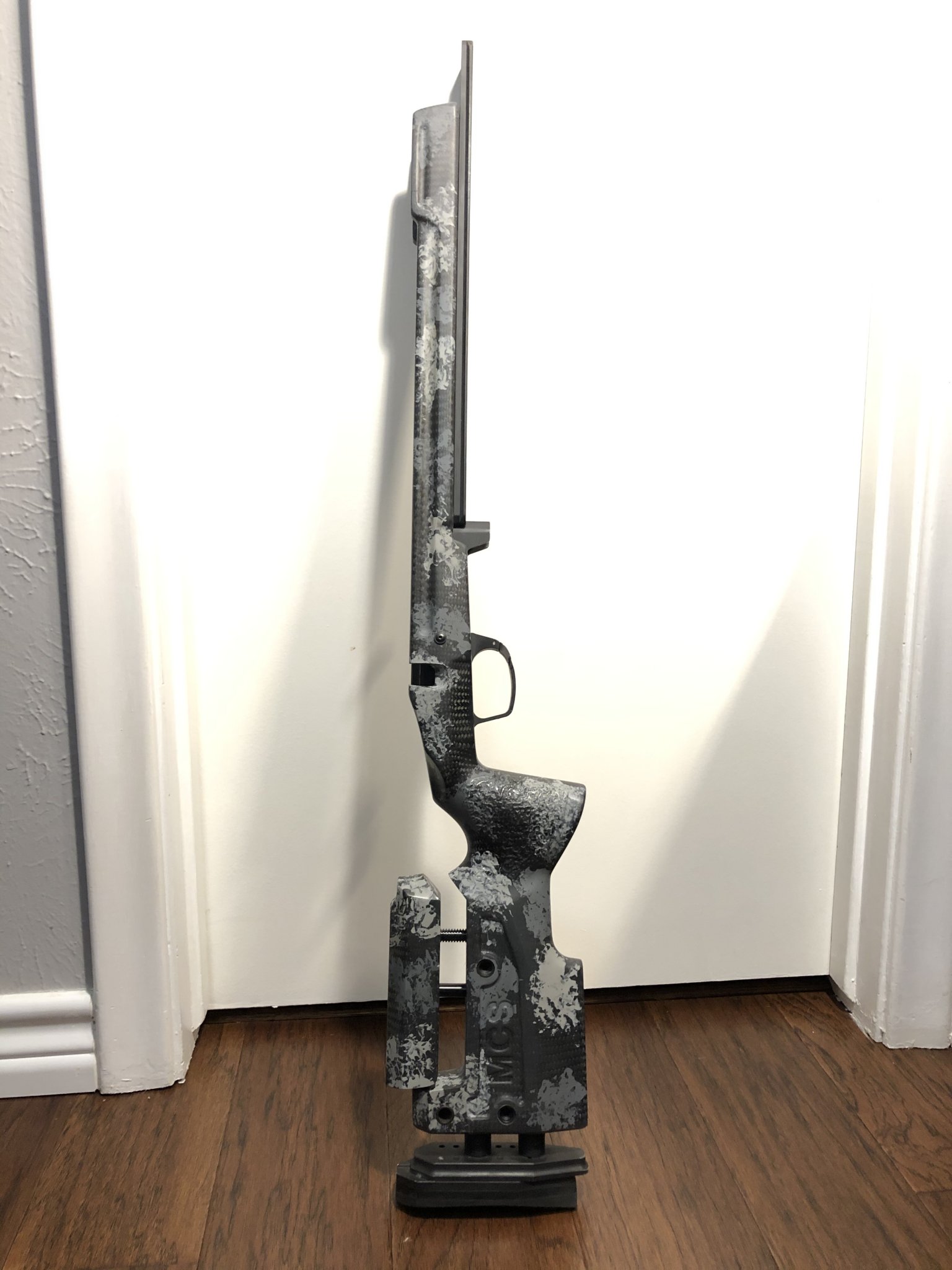 Used for a season. Bedded for an Impact action. From factory it comes with aluminum rail and one single weight for tuning but this has been upgraded($130) with steel rail and one additional weight in it.