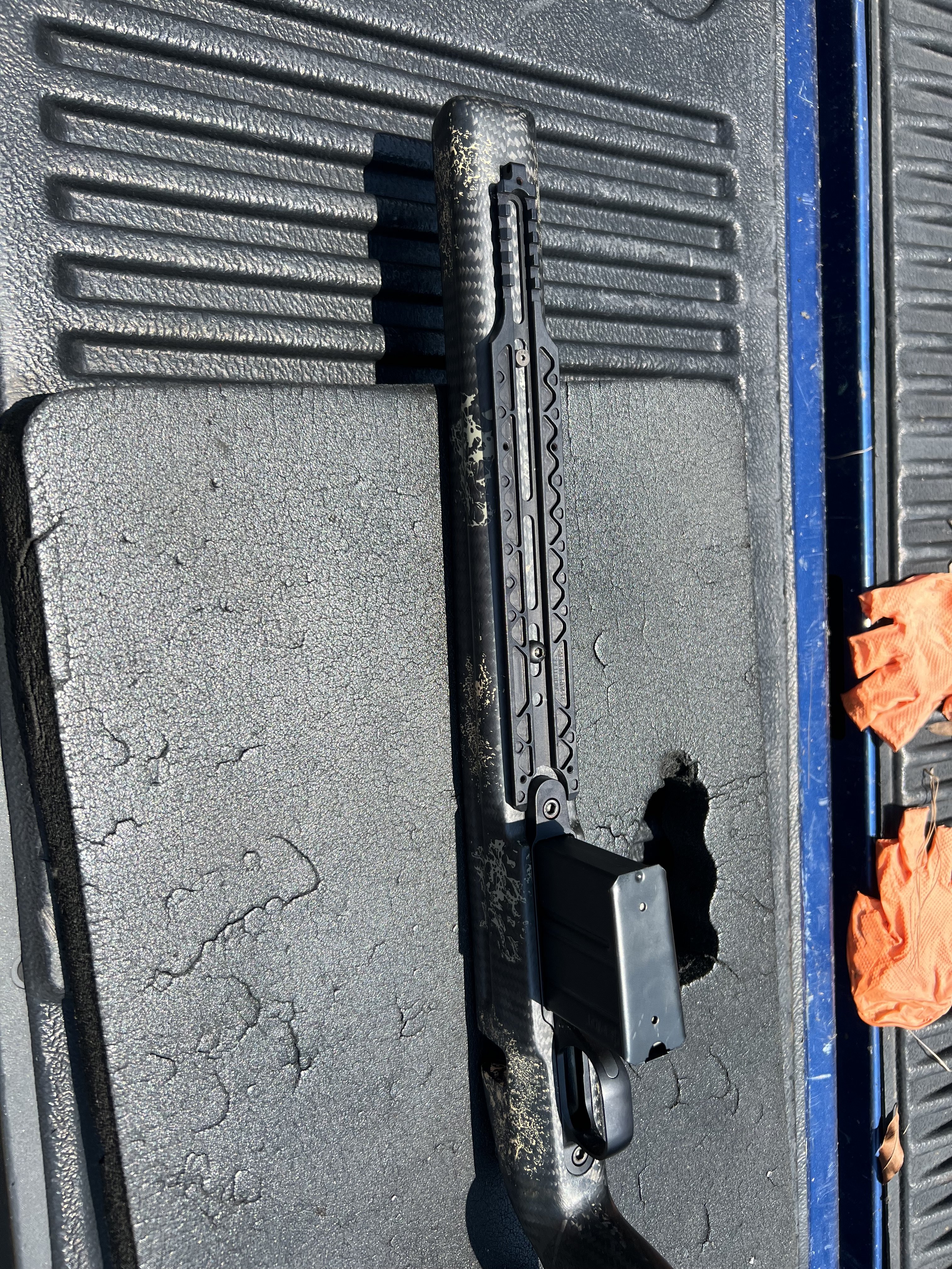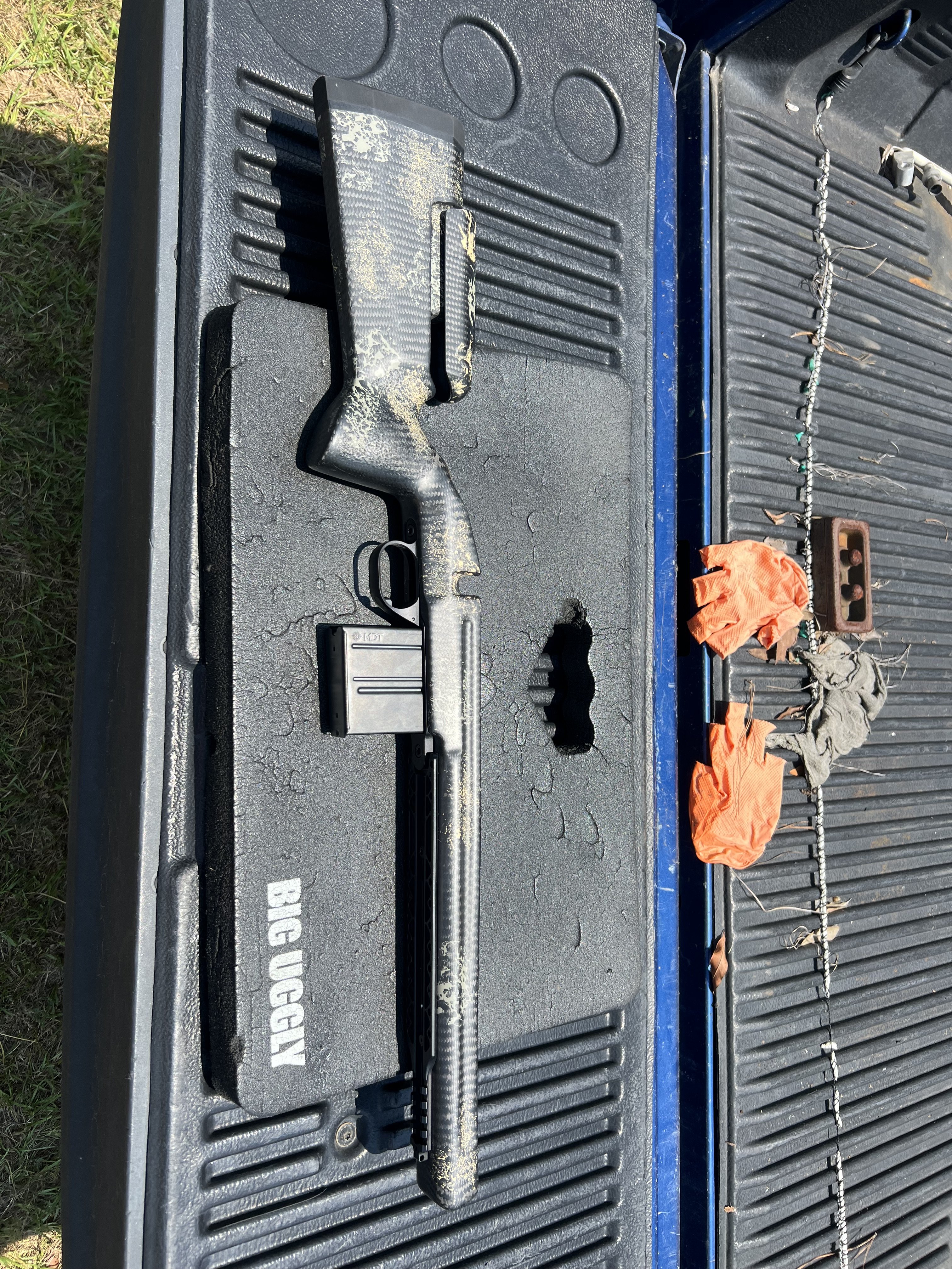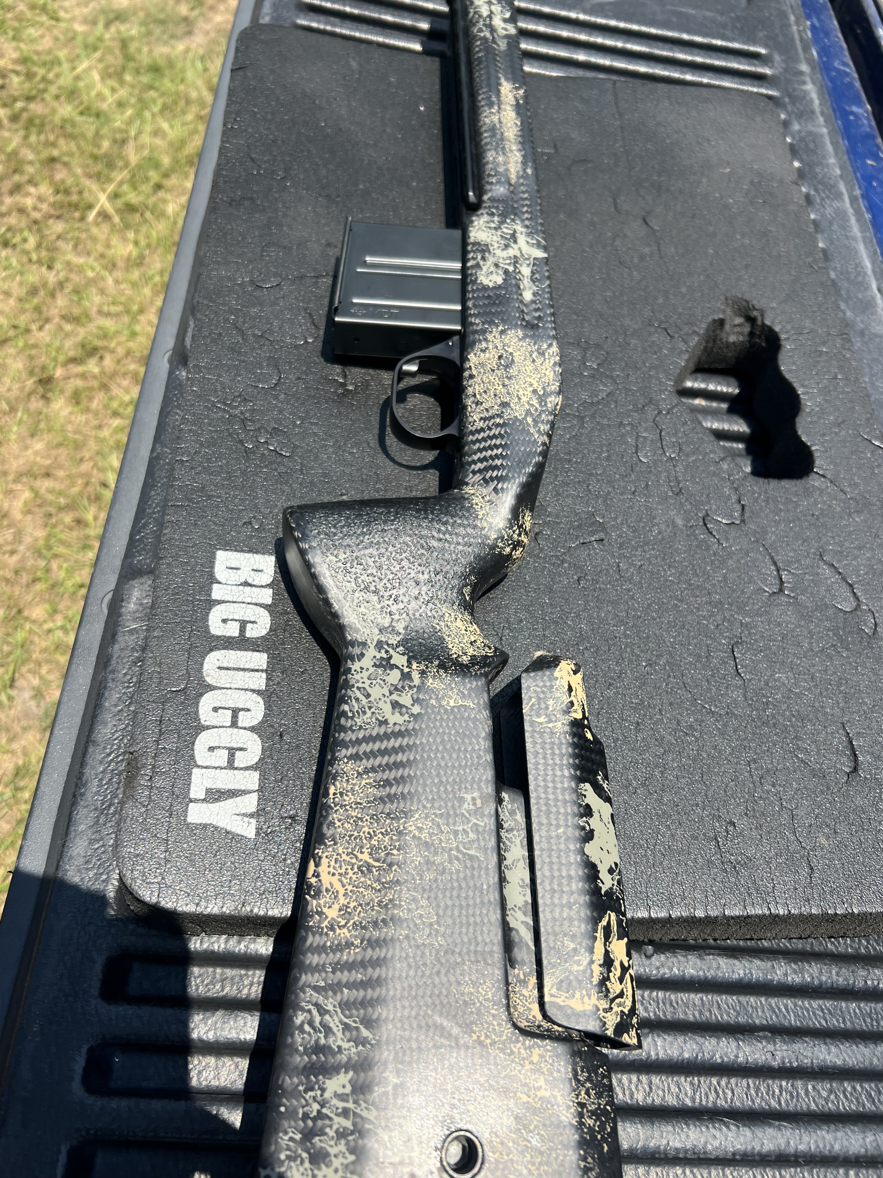 Hawkins DBM , It’s in excellent shape with an arca rail, and metal bottom. Had a aero short action 6.5 SAUM in it with Sendero profile barrel.