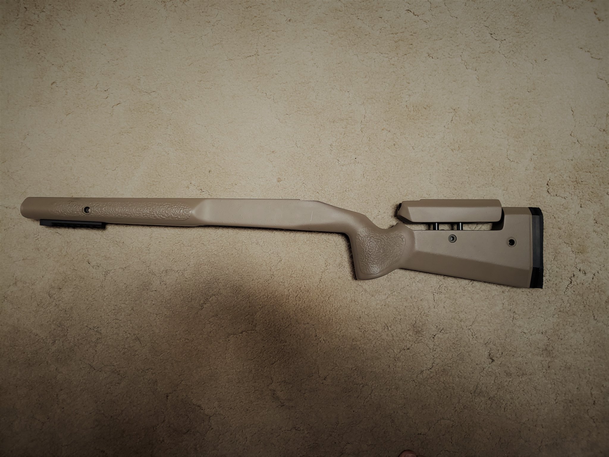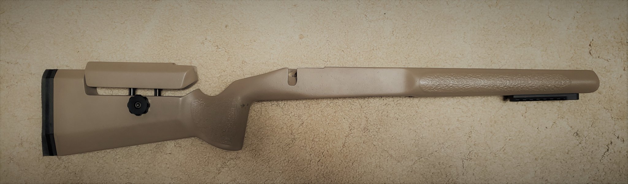Manners T2A for Savage 10 with 4.40 spacing and top bolt release. Coyote Brown, pillar bedded, LOP spacers and screws, left side front and rear flush cups, front pic rail, TS Customs adjustment knob. Includes Accurate Mag bottom metal for AICS mags, and hardware. $700 $625 $600 shipped. SOLD