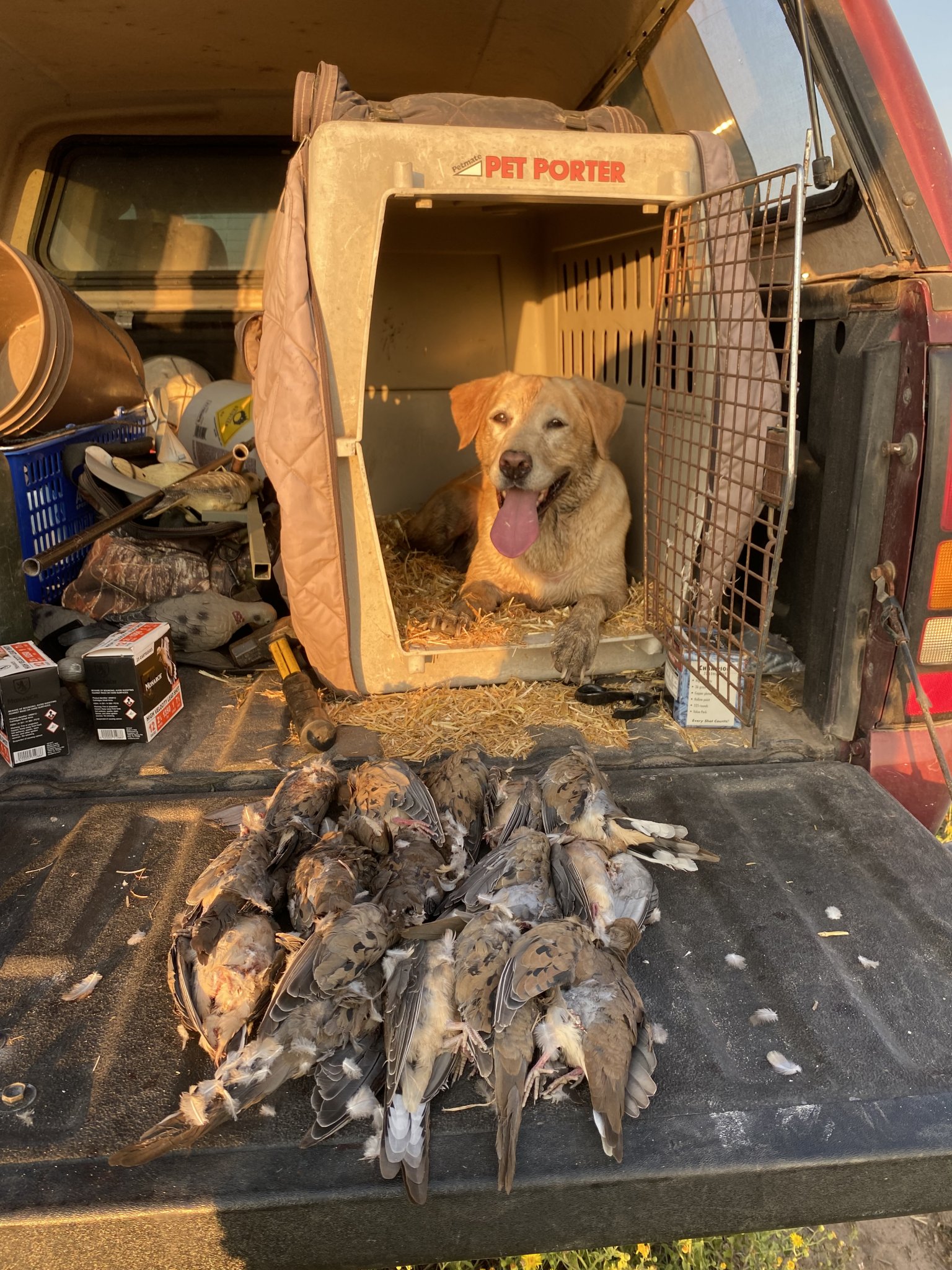 Had to take her in last week. They found her small intestine was all inflamed. Started her on two stomach meds, amoxicillian, and switched her to gabapentin from Tramadol. The vet sent some medicated canned food home and she is eating again. She gained 5lbs between Tuesday afternoon and Friday morning. Took her out and shot 10 dove Saturday morning despite the cold front that moved through.View attachment 7965578View attachment 7965579View attachment 7965580