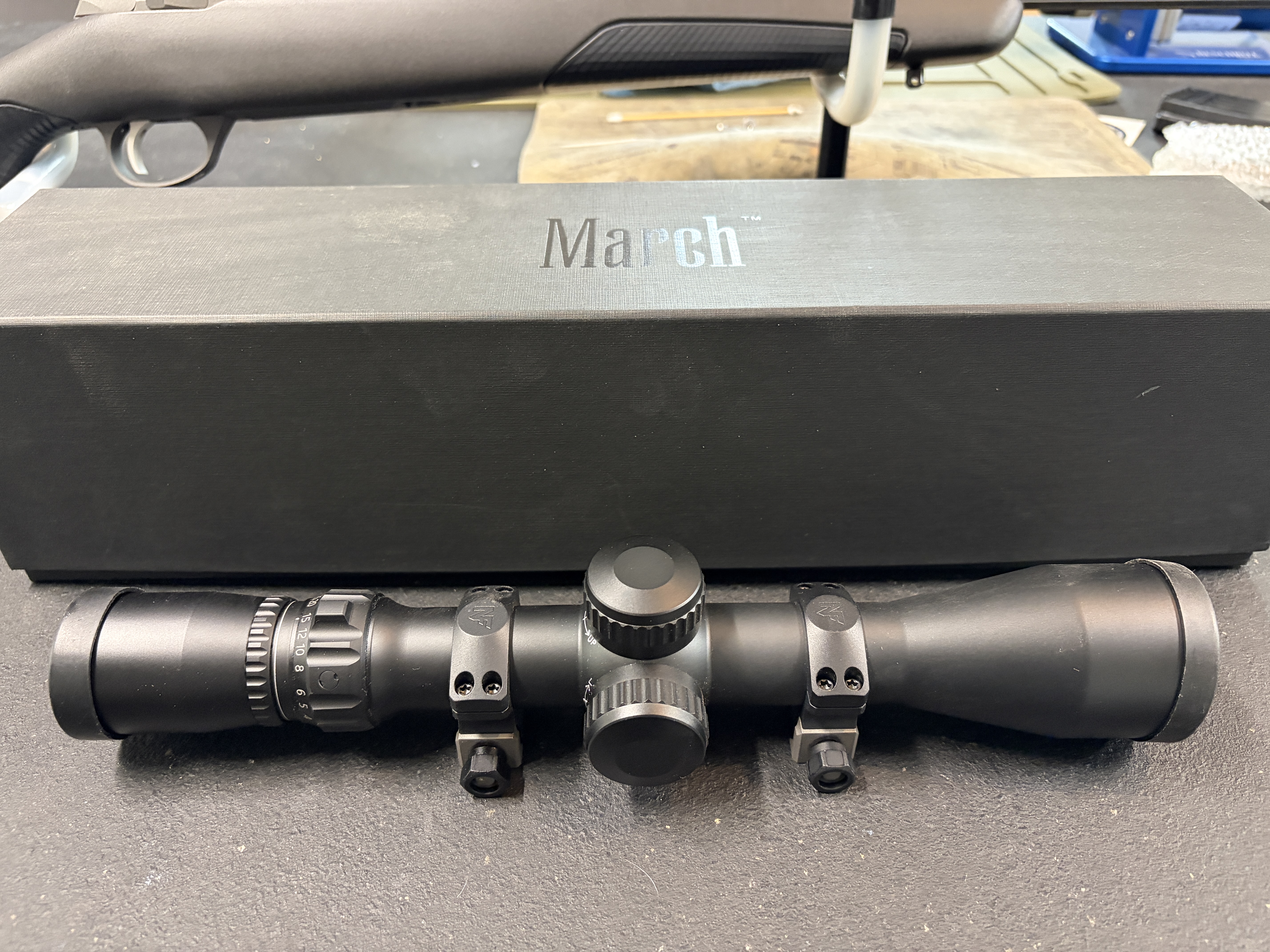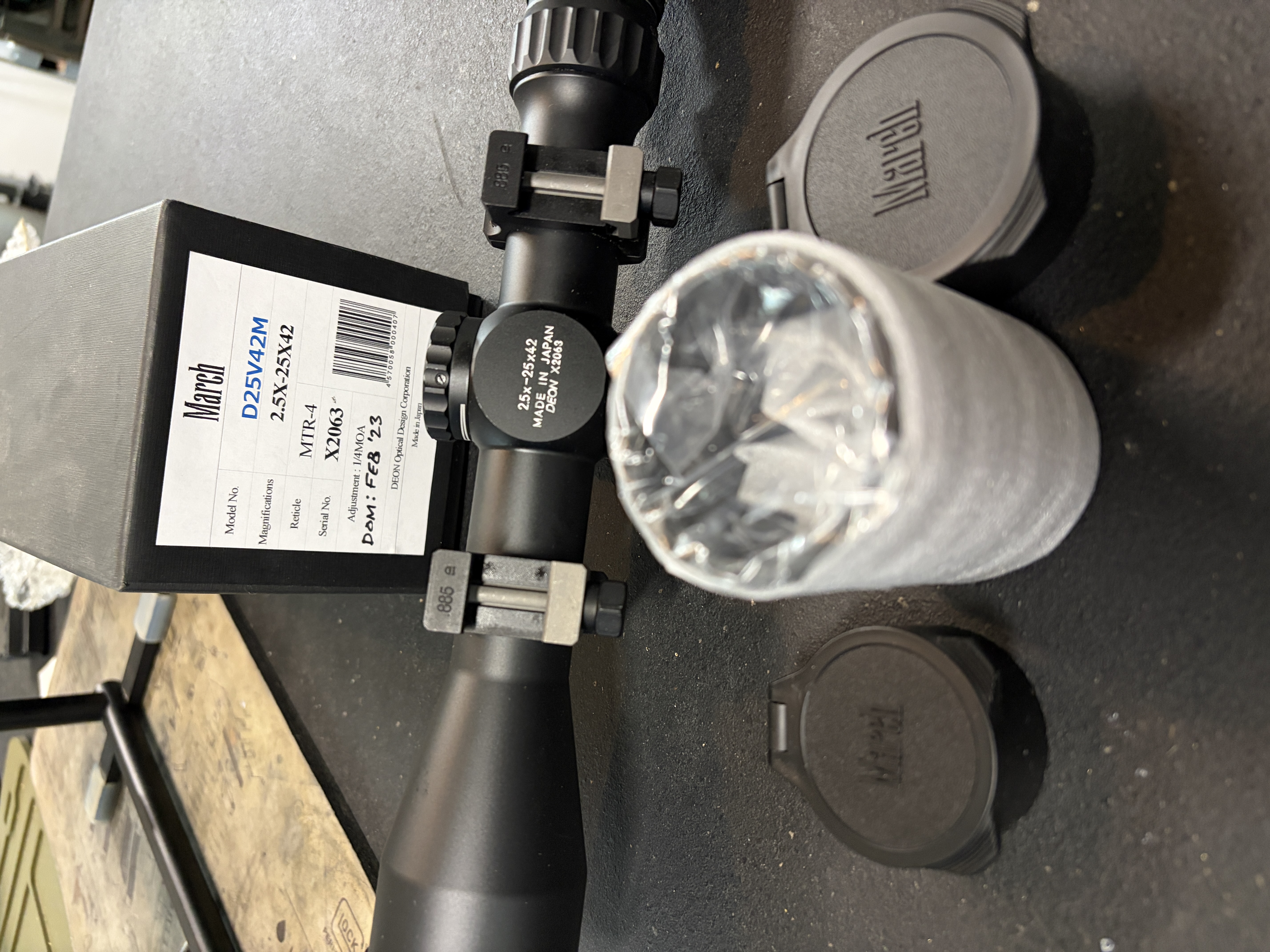 I’m selling my March 2.5-25x42 SFP scope with the MTR-4 MOA reticle. It comes with the original box, scope covers, and the sun shade. It’s mounted in Nightforce Ultralite low (0.885) rings.