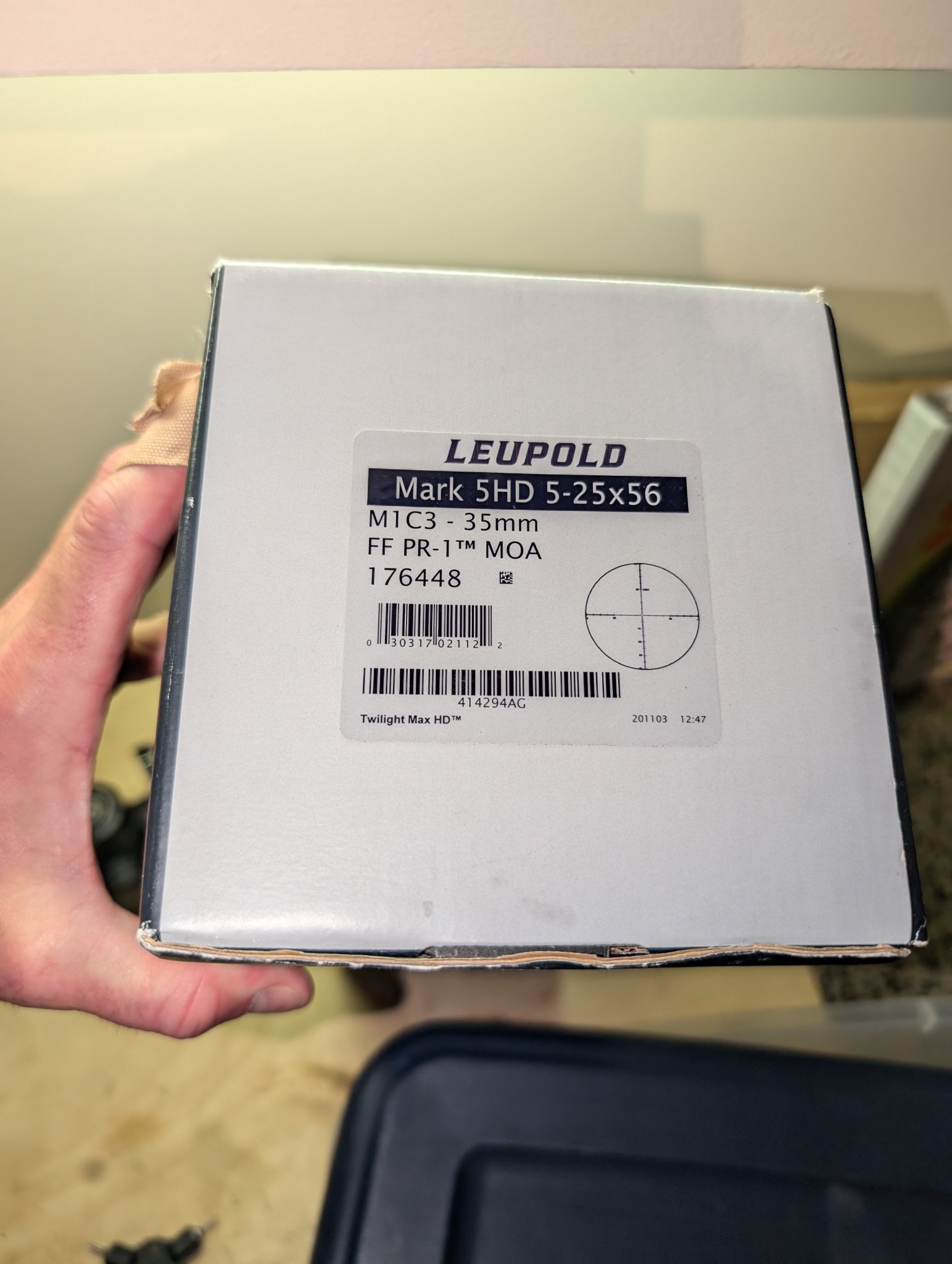 Mark 5HD 5-25X56 M1C3 PR1 MOA barely used. Taken to the range twice. Has seekins low rings $1675 for scope and rings shipped or $1600 scope only.