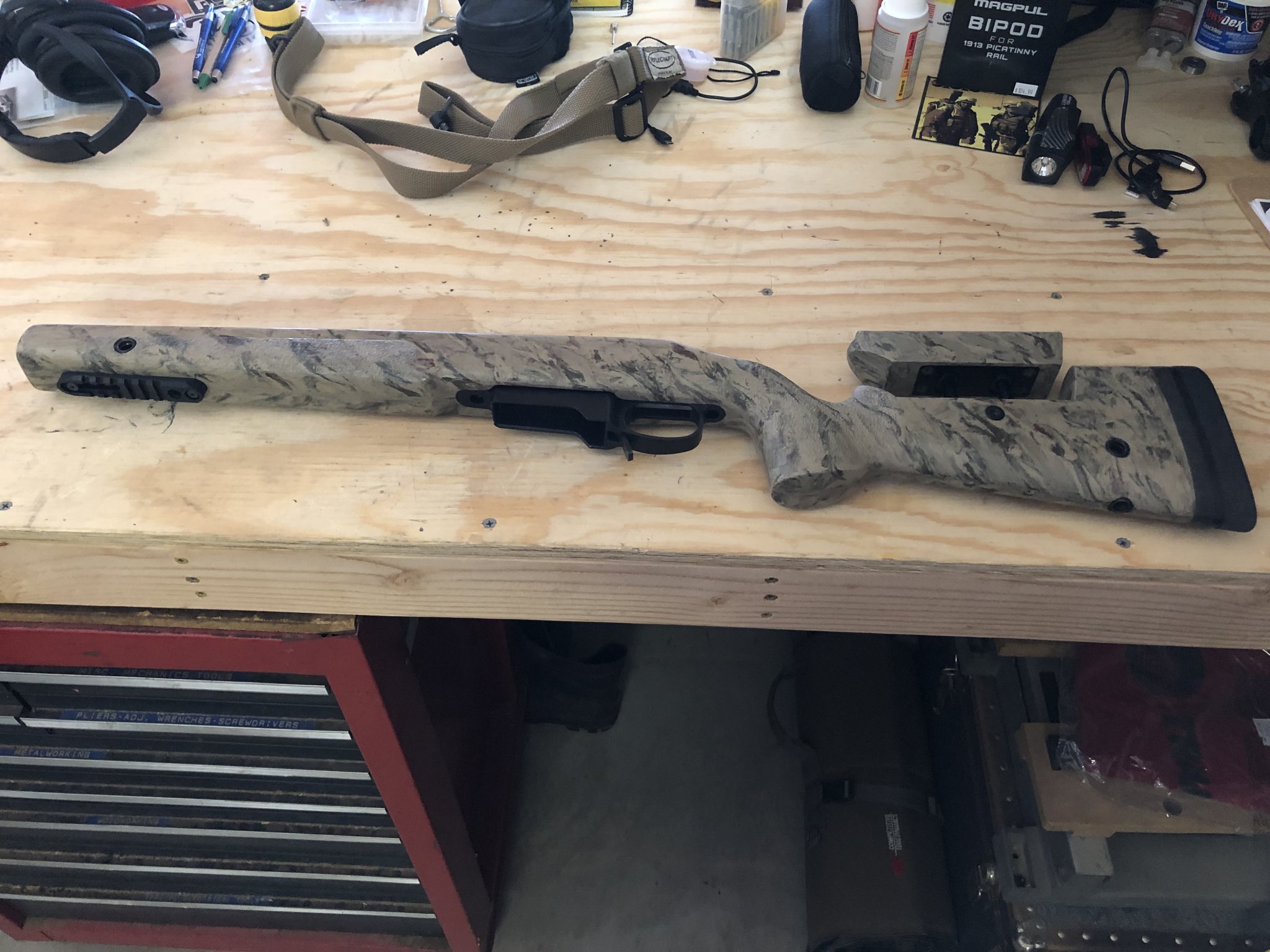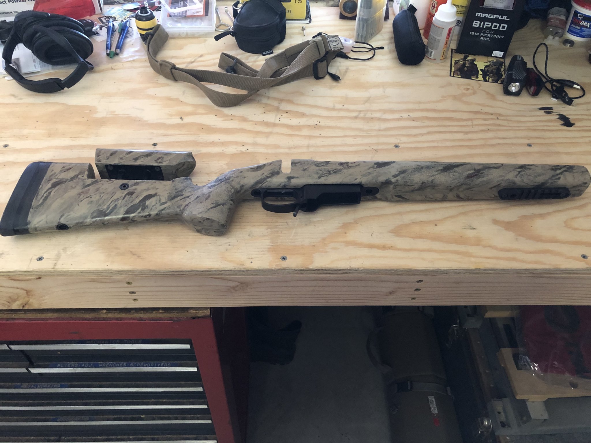 McMillan A-3 with Atlas rail and sling studs, KMW Loggerhead hardware with standard AND extra long legs for larger optics. Pillar bedded for a TL-2 by RW Snyder and flush cups on left side. Price includes Stockys DBM.