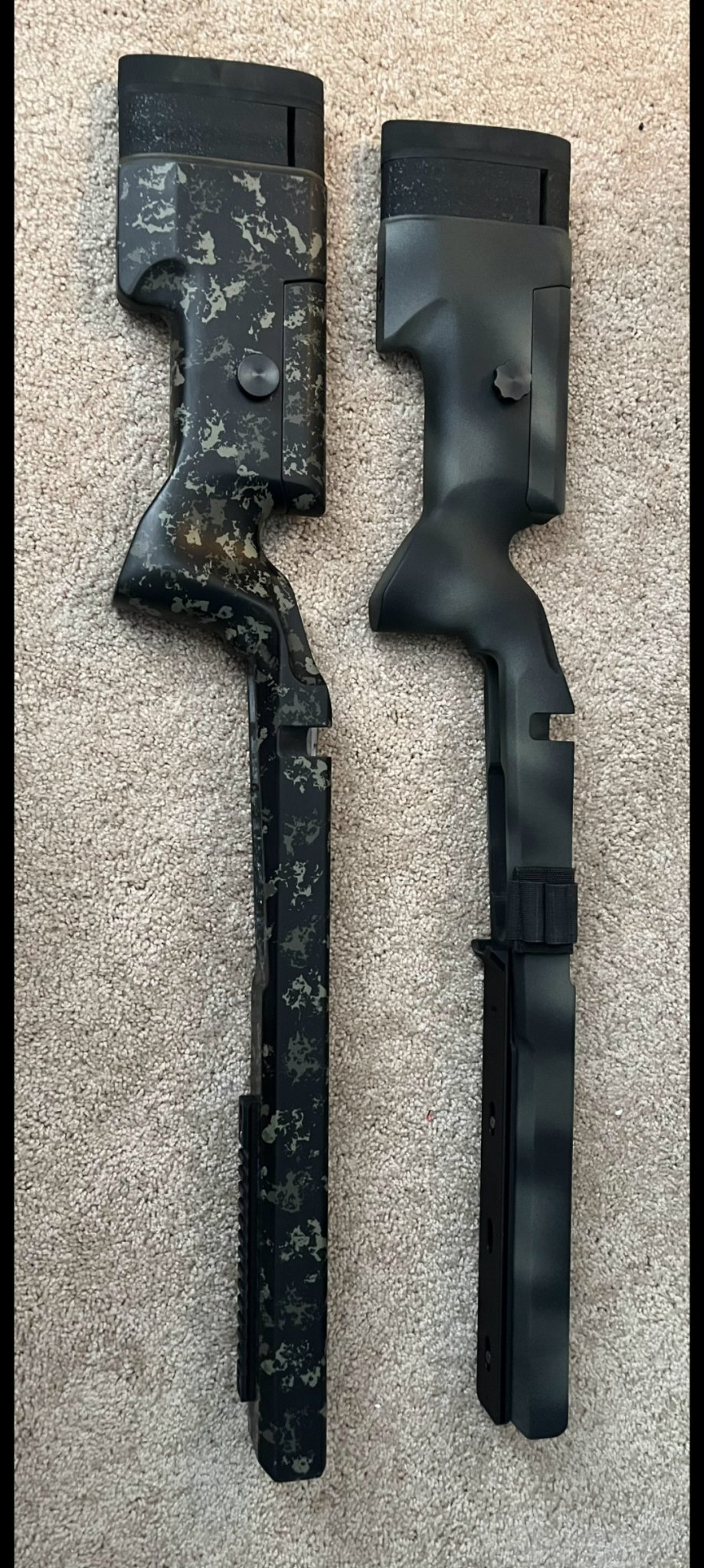 1.McMillan A3-5, hydrodipped black multicam, inletted for a Remington 700 long action, the factory rem bdl floor plate, and the factory rem varmint barrel contour. $675 shipped
