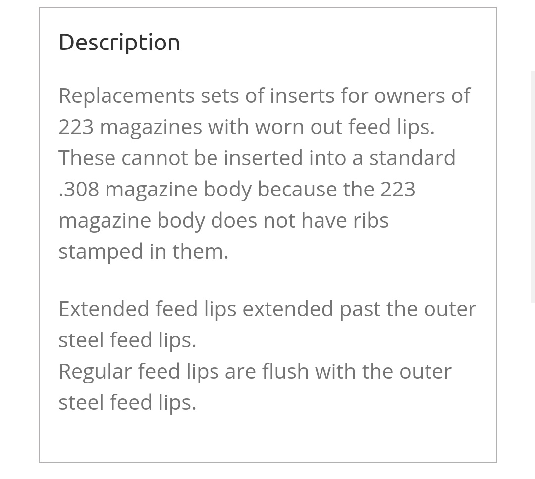 I am currently on my fifth mag and MDT is sending a polymer one to test but there isn't anything else they can do since its within their spec and the suggested contacting XLR. I don't think they will have much to say as I have all ready tried to adjust the mag catch. Also I have ZERO issues with their 6BR mags on this same action and Chassis.