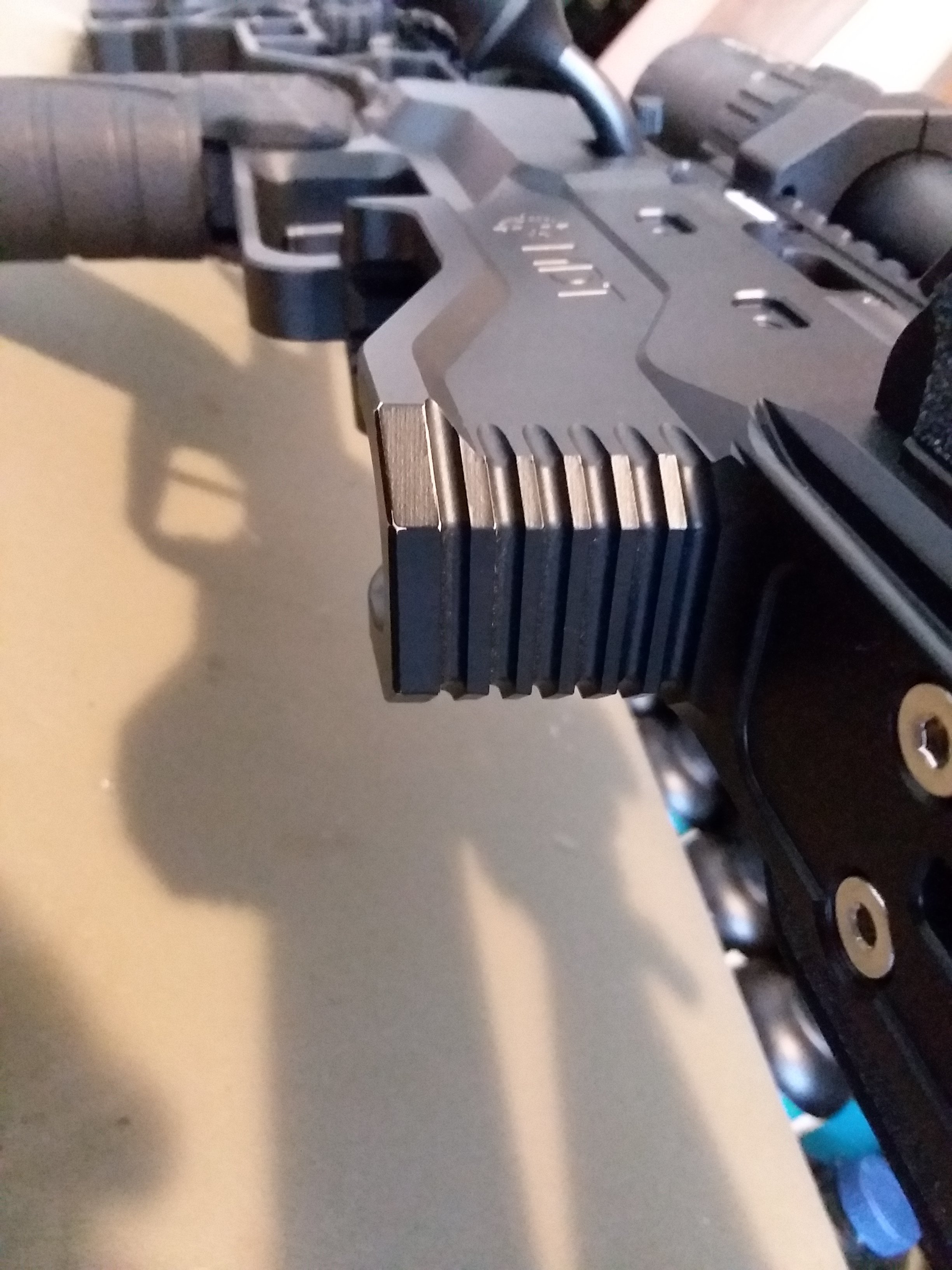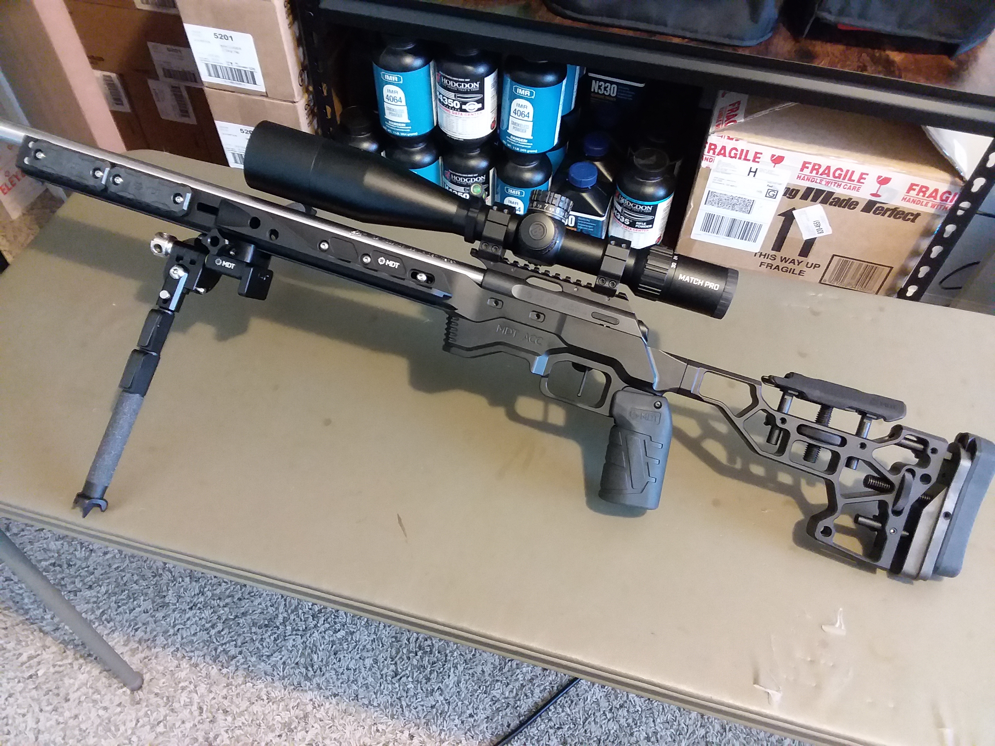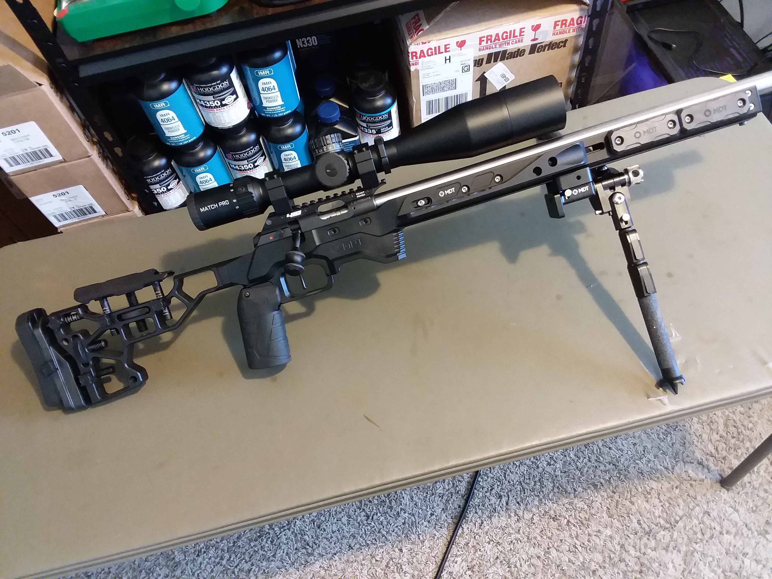 Lightly used. The only wear I can find is very minor on the corners in front of the magwell from some barricade shooting. It is otherwise very clean. Includes the chassis, full internal five-piece weight set, four external m-lok weights, Baker wings, and stock weight (not pictured but it is included). I can grab more pictures when I pull the action out. Right now it is acting as storage/protection for the trigger and internal magwell.