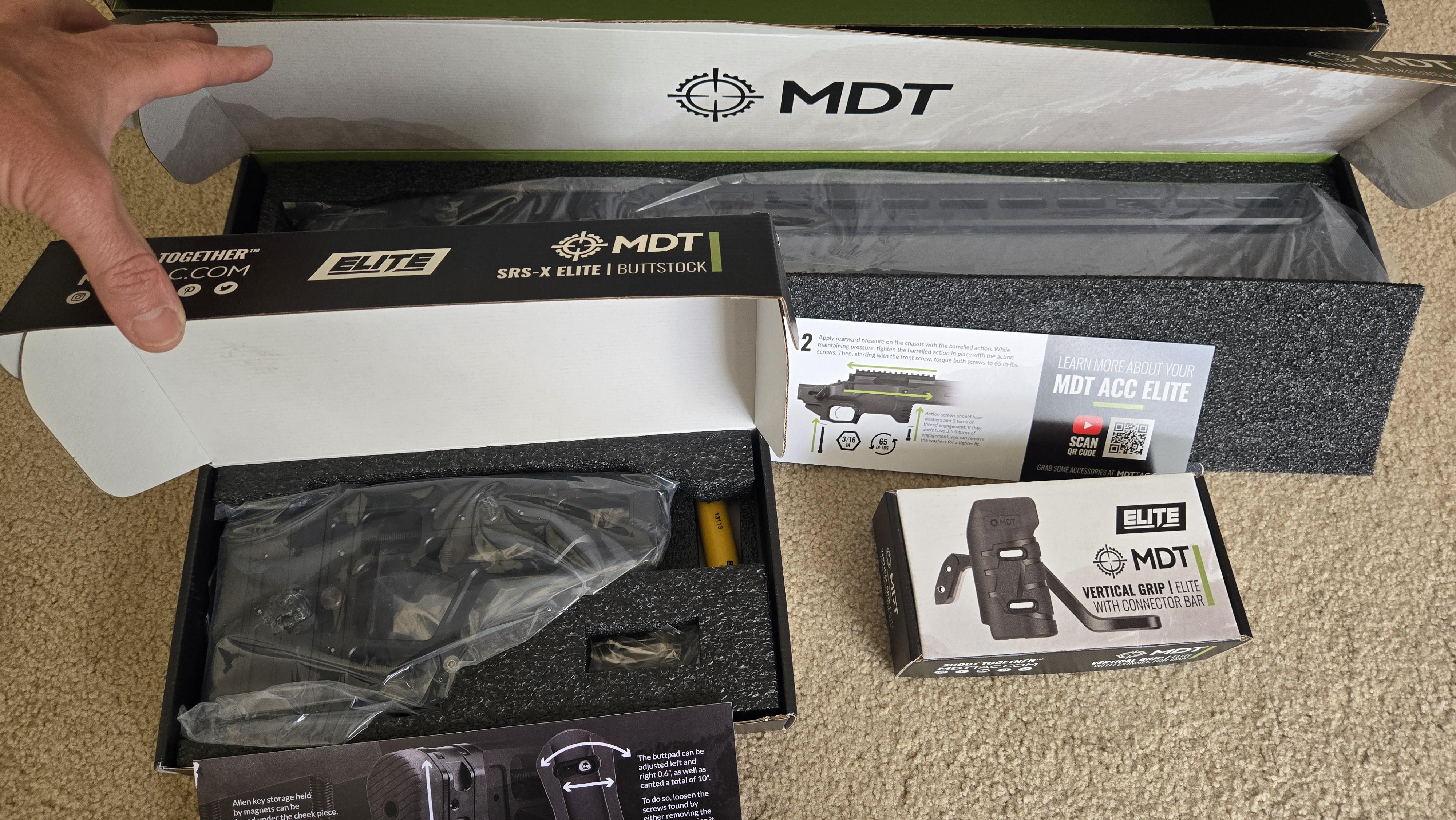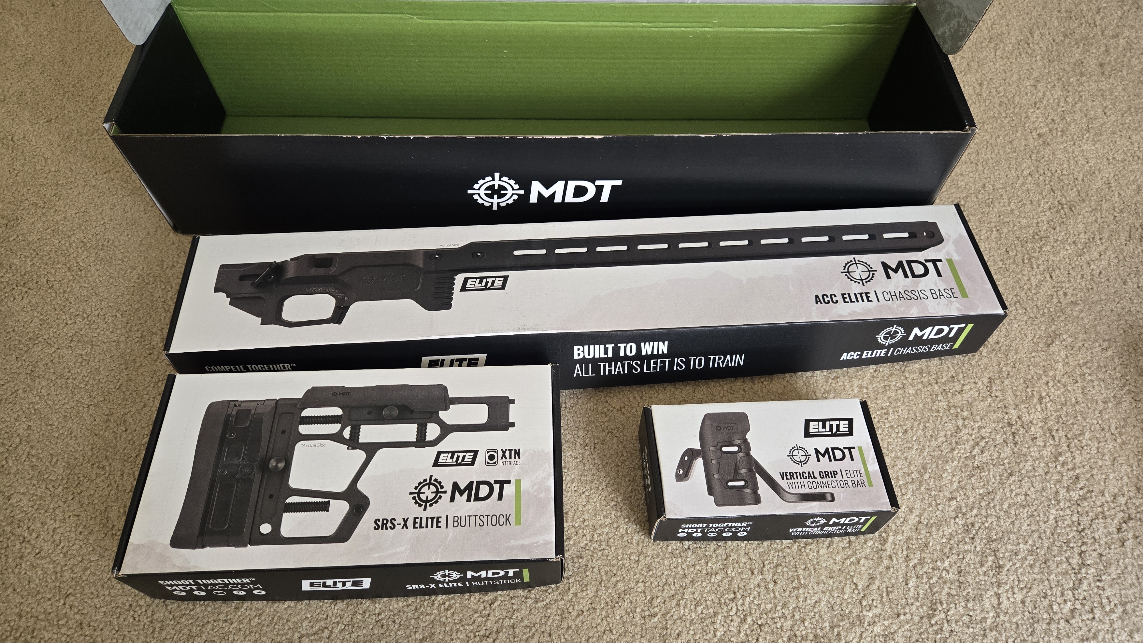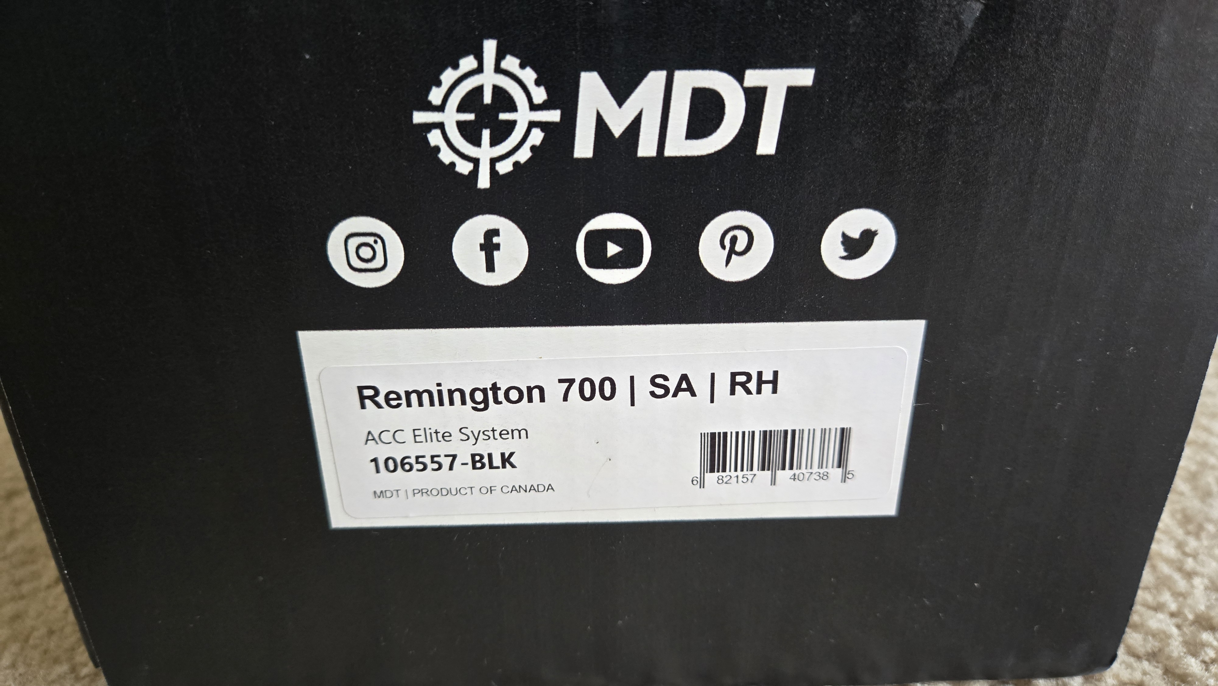 This is a brand new, in the factory boxes, MDT ACC Elite short action Rem700 chassis in black. I bought it thinking I'd use it, but decided to go a different direction. The chassis is flawless, without a mark on it. I'm asking SOLD shipped.
