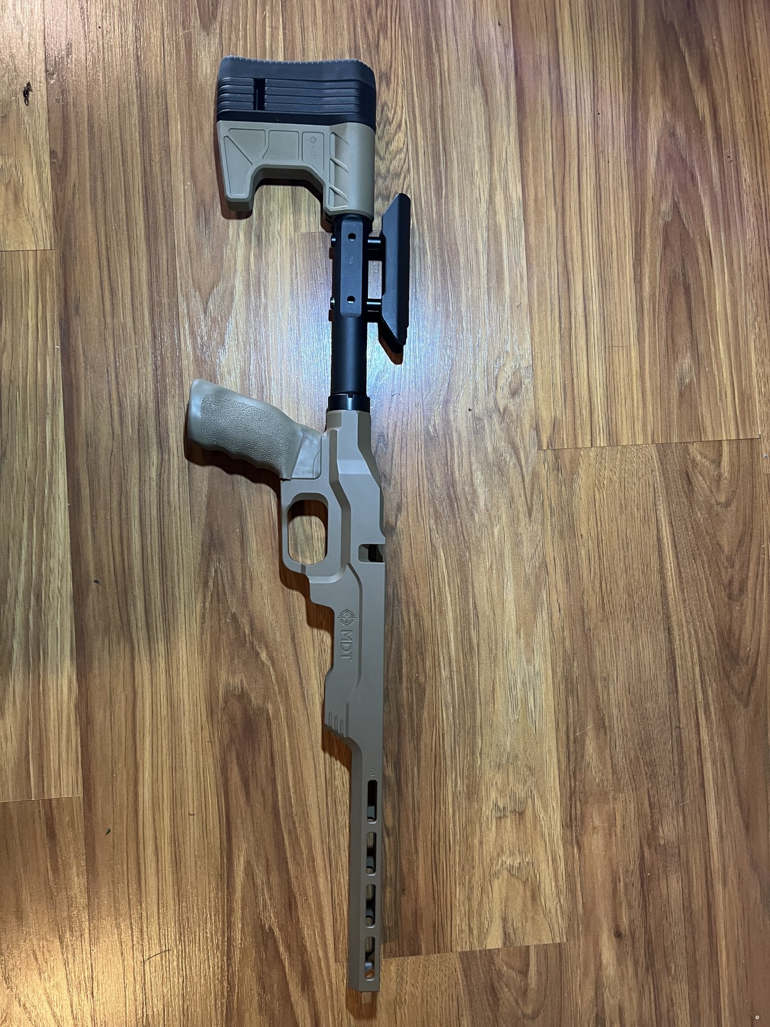 Selling MDT LSS-RF chassis (Gen 2) for Savage MK II (right hand). Also has a composite carbine stock installed and Ergo Tactical Deluxe hand grip. I used it for a few NRL22 matches. It is in good shape, but may have a small scratch or two. I included pictures of the chassis and buttstock boxes to show model numbers. I paid $600 new. Asking $350 (includes shipping). PayPal F&F preferred, but also have access to Venmo and Cash App.