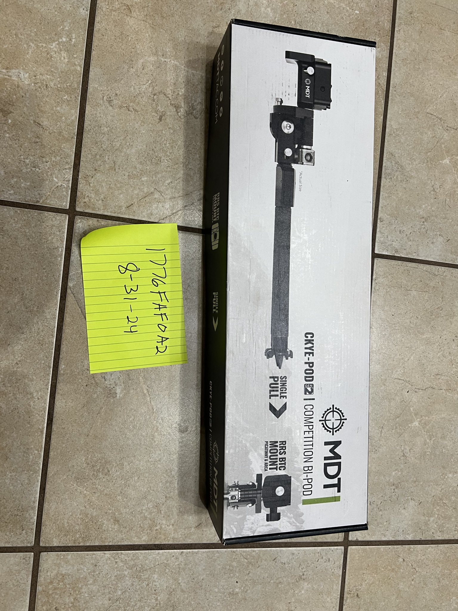 MDT Ckye-pod 2 single pull new in box. Part number in pictures. This was simply more bipod than I need. Accept PayPal friends and family or Zelle. 550.00 shipped next day air FedEx. Once payment is received I will ship next day from my work.