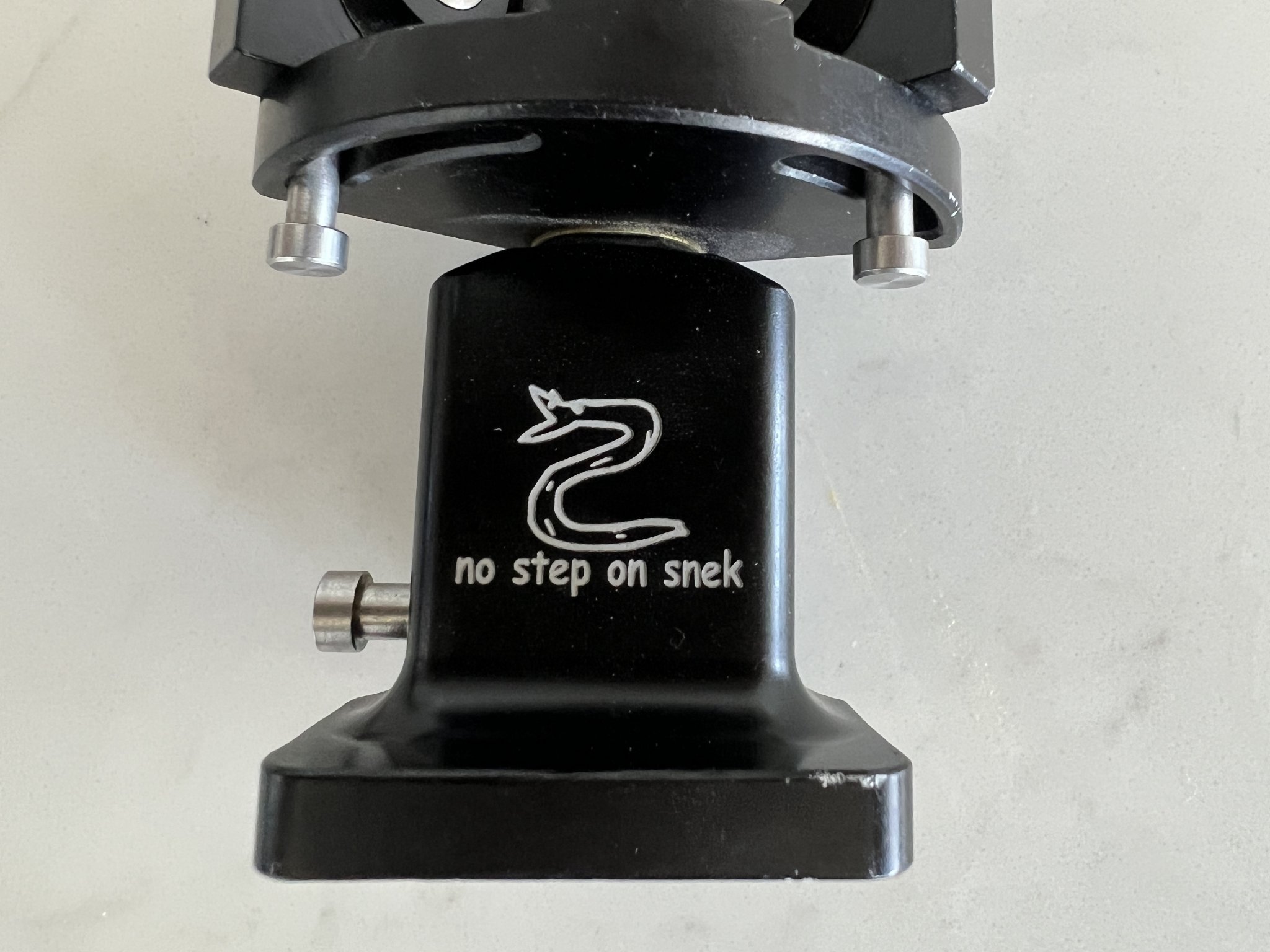 Has custom “No Step on Snek” engraving on the bottom.