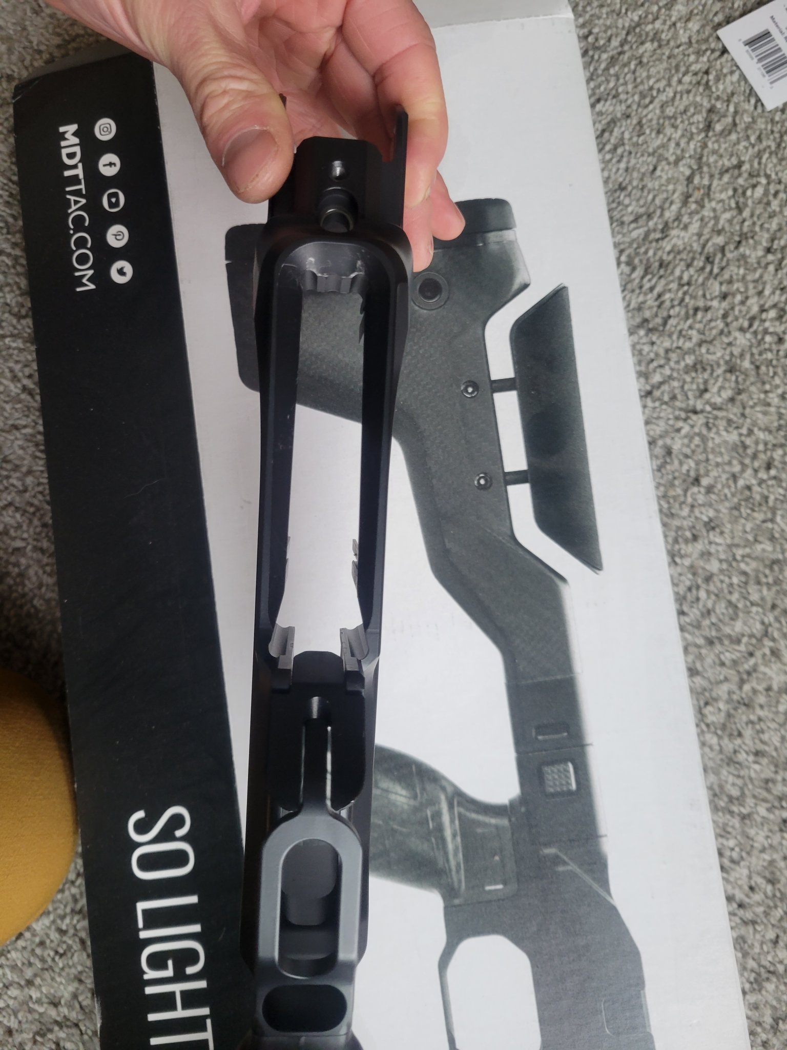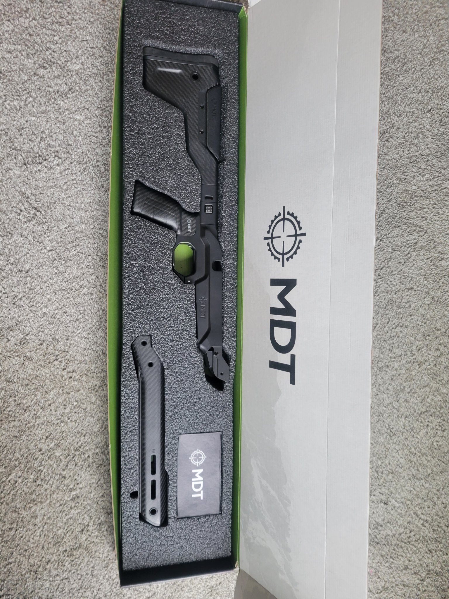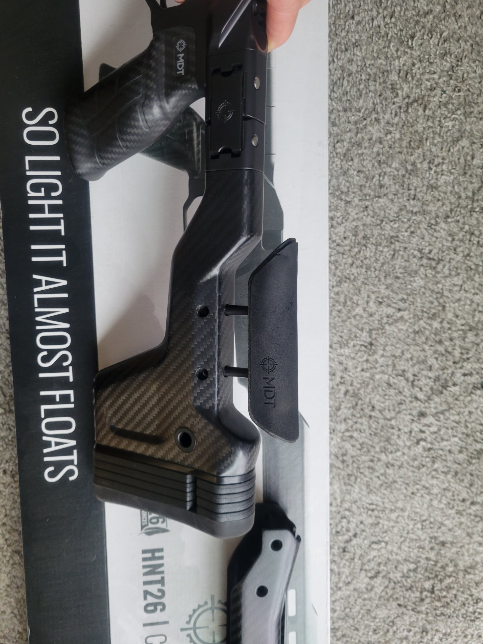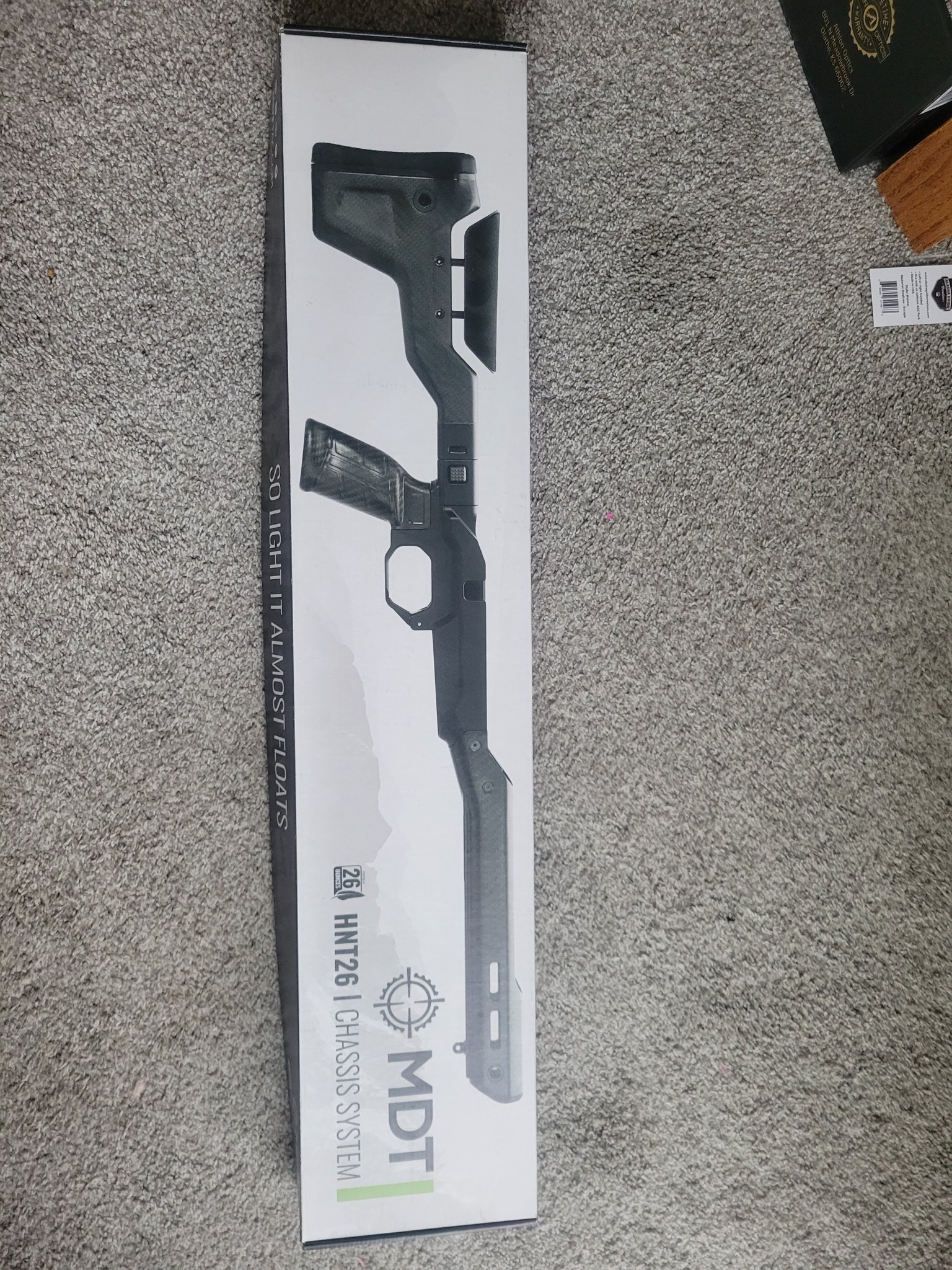 MDT HNT26 Remington 700 long action Chassis with folding stock and ARCA rail. this chassis was used on 1 hunt and is in really clean condition. There are a couple of marks on the mag well from inserting magazines and the foam on the cheek rest has a couple of scuffs.