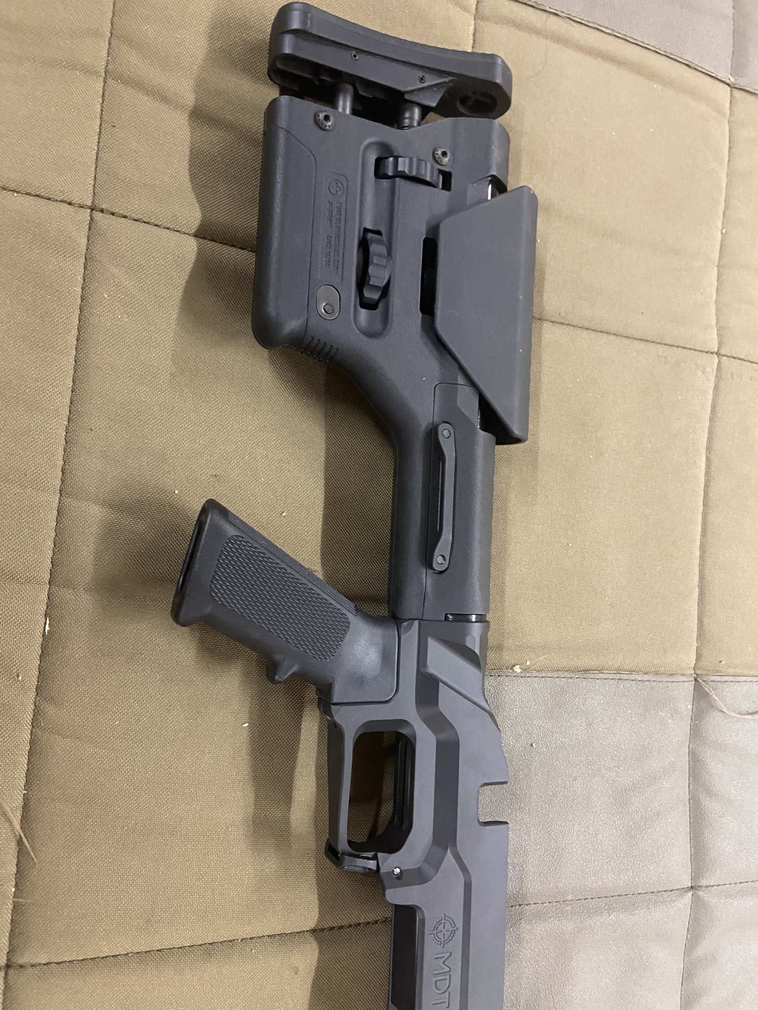 MDT LSS XL gen 2 with Magpul PRS stock. Includes 7” MDT pic rail with flush cup on it and Cykepod with pic adapter. Includes used MDT grip panels.