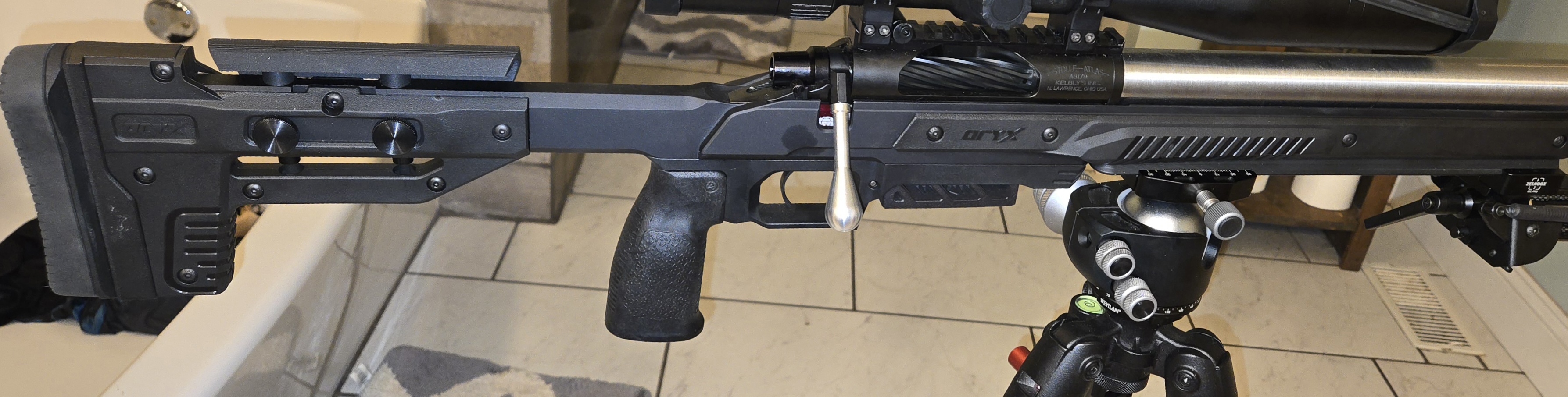Ive got a practically new(two weeks old at time of post) MDT ORYX chassis. Bought to use while main chassis was at cerakote. Fits remington 700 sa-rh. Upgraded full length mdt oryx arca rail, vertical grip, upgraded cheek rest, and upgraded thumb screws for cheek rest. Comes with a couple of prototype bag rider/butt spacers, factory mdt grip as well as origional cheek rest. Only mod is an internal notch for trigger hanger which isn't visible when rifle is in the stock. Im about $560 plus shipping in it. Will take 425.00 shipped.
