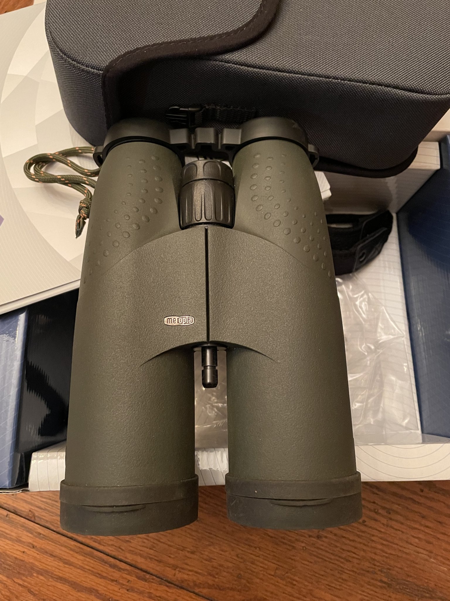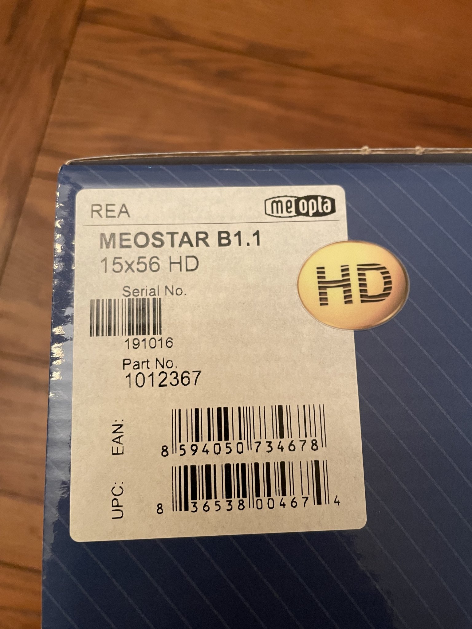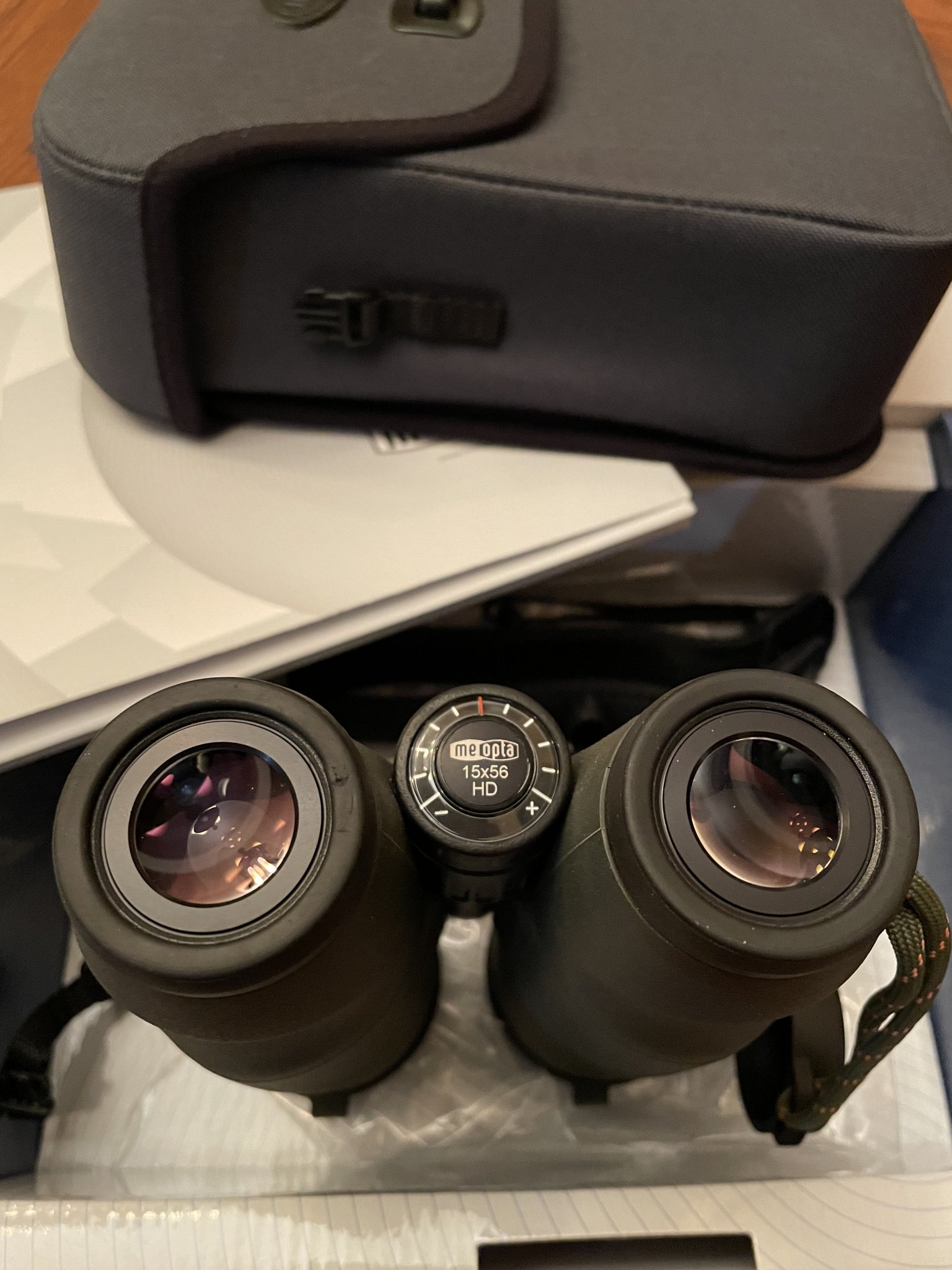 Meopta Meostar B1.1 15x56 Binoculars. These are in very good condition as you can see from the pictures. The Outdoorsman stud is included along with all of the factory paperwork, box, case, strap, etc. These have seen very little use.
