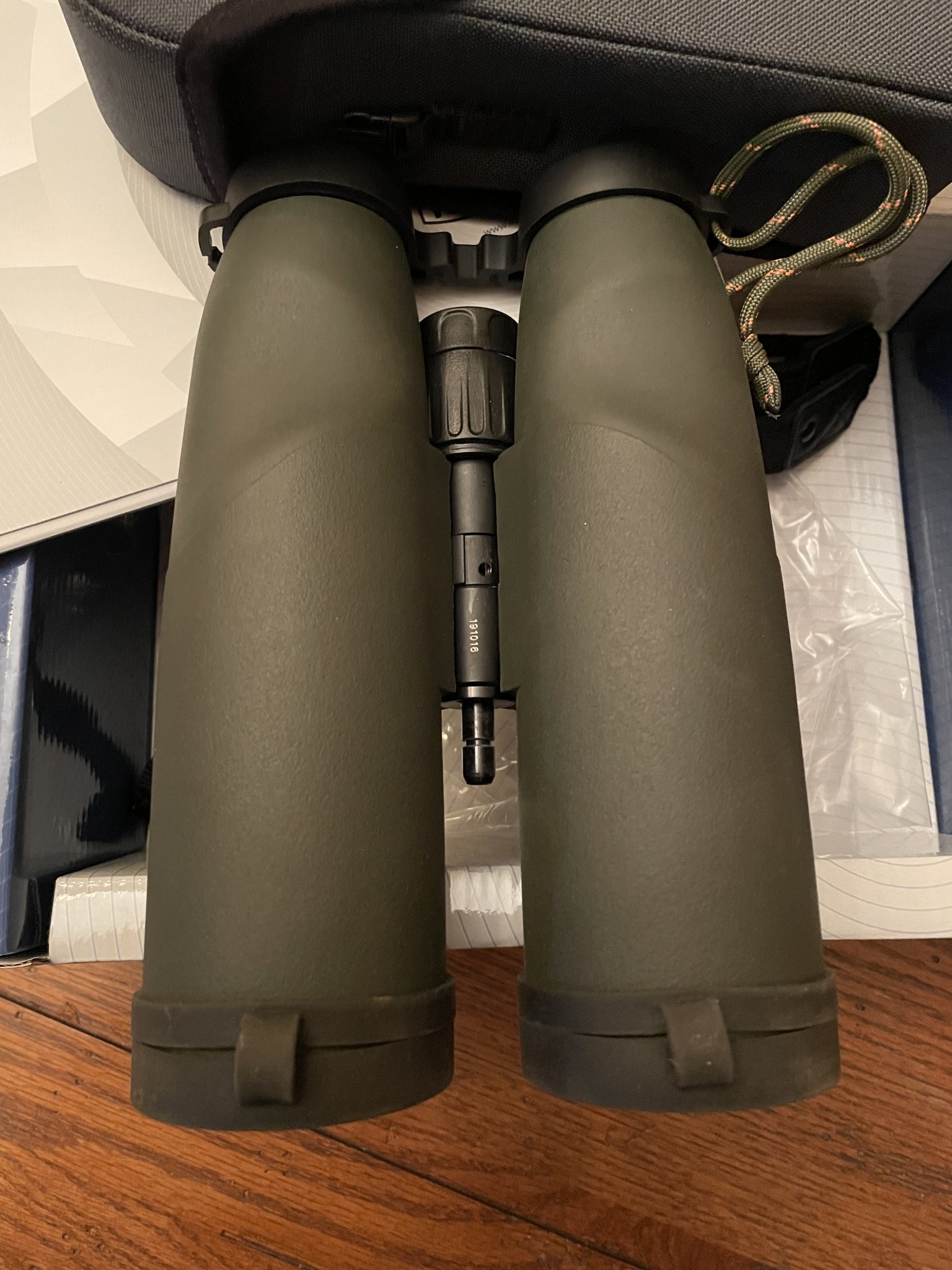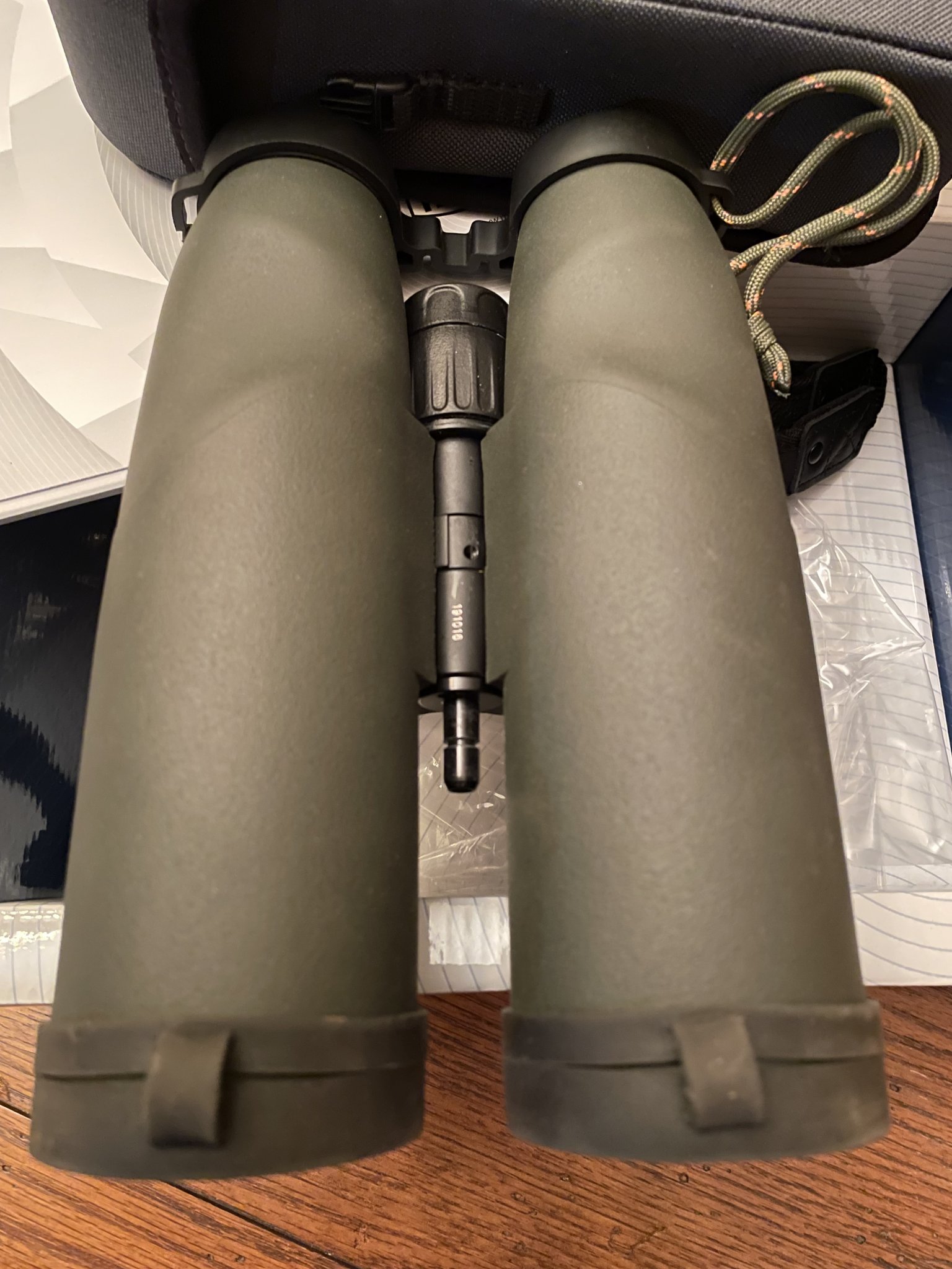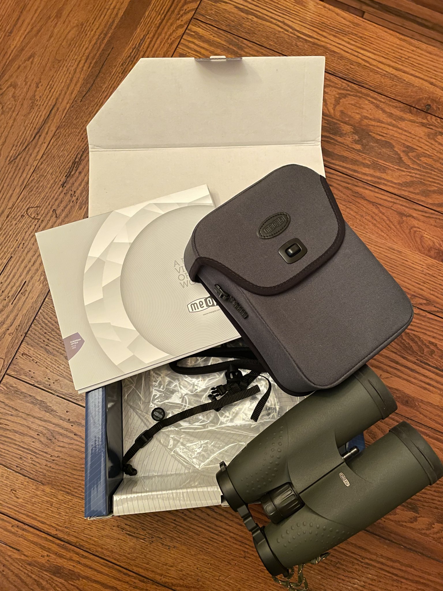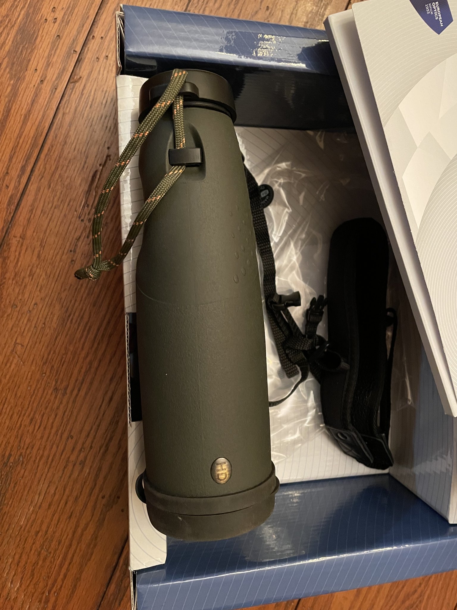 Meopta Meostar B1.1 15x56 Binoculars. These are in very good condition as you can see from the pictures. The Outdoorsman stud is included along with all of the factory paperwork, box, case, strap, etc. These have seen very little use.