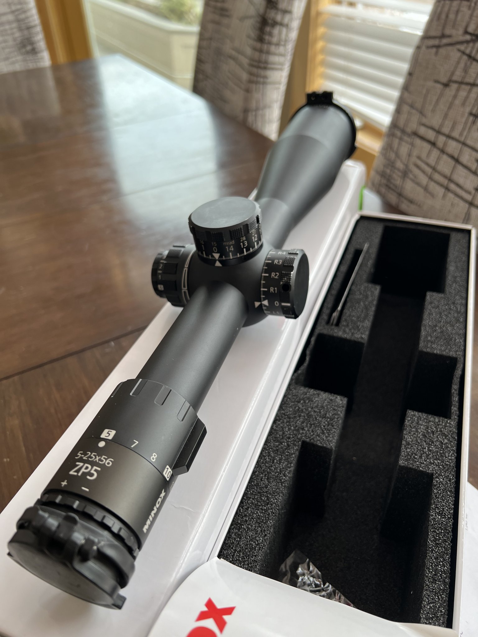 White Box Minox ZP5 MR4 5-25 Scope for sale. Mild scuffs on the on the turrets glass is impeccable.