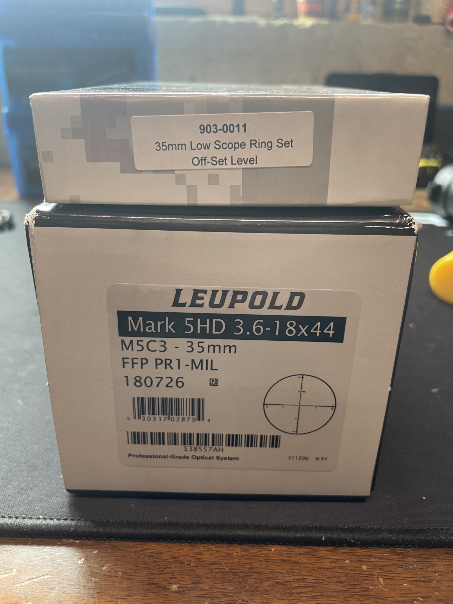 Moving my MK5 in the process of building up a new hunting rig. This scope is in excellent condition with no visible marks that I could see. *This is a non-illuminated model.* It has lived on a .300wm and has only seen 75 rounds. This will come with original packaging as well as Hawkins 35mm low rings.