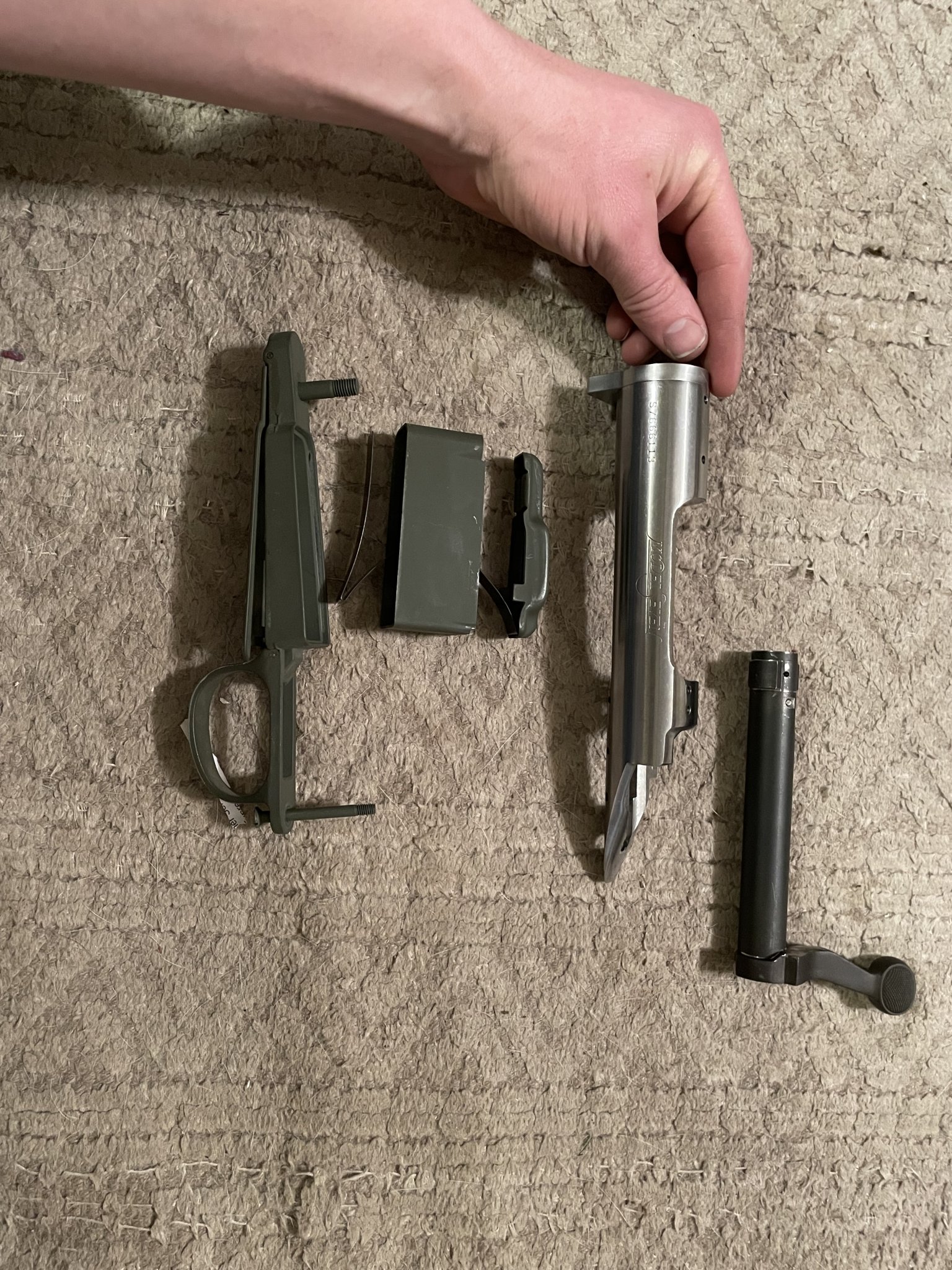 Hey guys, looking to sell this Model Seven action and bottom metal mag box follower and spring to someone. I had been planning on building a rifle on it. LRI blueprinted the action pinned the lug and blew the rear guard screw out to 1/4-28 for me. They also trued the bolt opened the bolt face to .473 and installed the M16 extractor. Asking $1000obo for everything in the pictures… besides the rug shipped to your FFL. My loss is your gain. Pretty motivated to sell so make an offer.