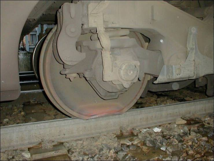 If it's only one wheel, it probably stuck after they departed the originating terminal. No piss test. This was one of my arguments when I testified years ago at an FRA hearing about removing towers and tower operators. Operators would have seen the sparks coming from that wheel and stopped them long before it got that bad. That picture doesn't show the whole picture. Look at the distortion in the wheel. That got hot and was hot for a long time. That flange could have warped or broken off and then you'd have that train on the ground. Then there would be a piss test.