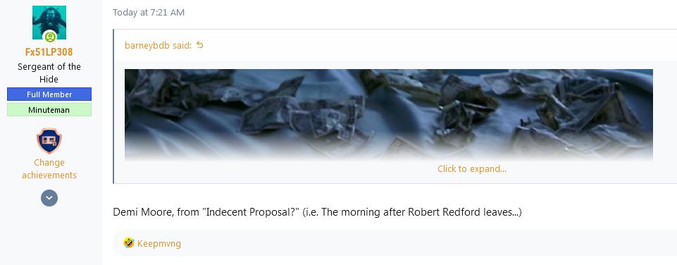 I know you "Ha Ha'ed," but I was actually serious. There is, in fact, such a scene in the movie where Demi's character wakes up to discover the $1M sprinkled in small bills, all over hear bed. I was just wondering if this was that scene....