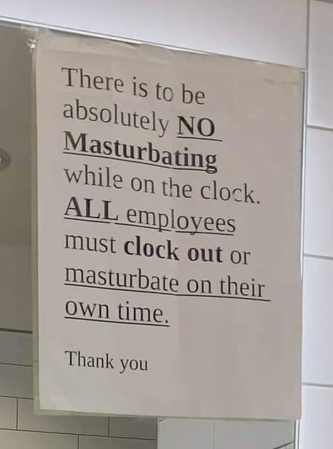 Now they tell meFrank is posting signs in the employee lounge. The mods are going to be pissed.