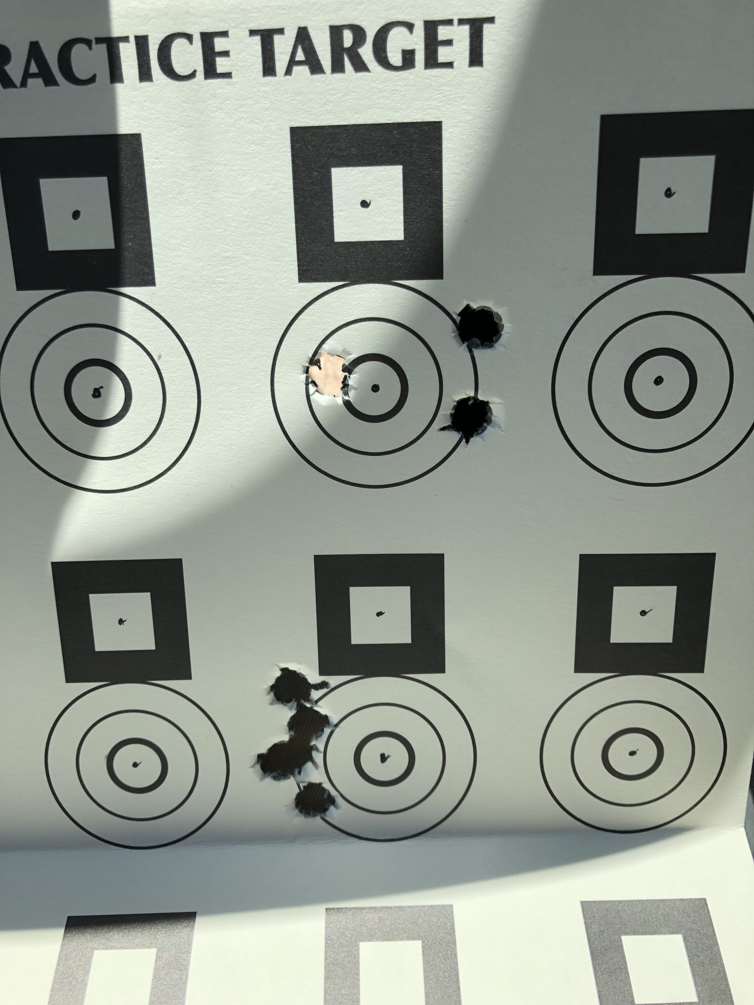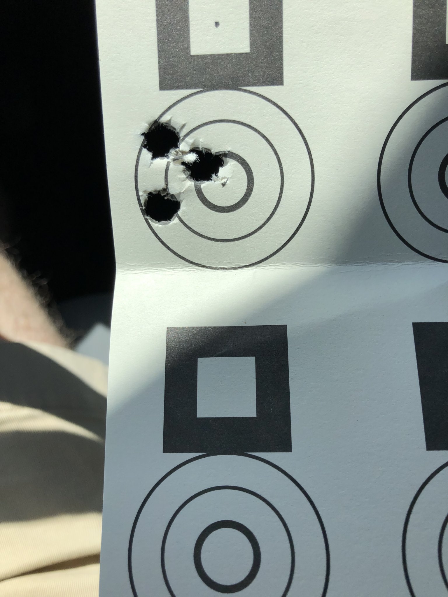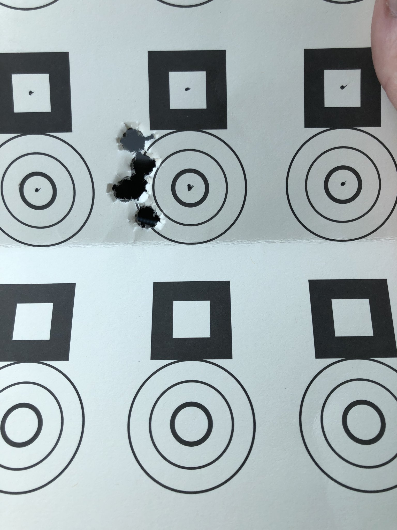 got requests for a target. havent shot this since '15, or a precision semi for that matter so i am rusty (not that i was good to begin with. but two 3 shot groups and then a final 5 shot group. plaine jane 175 fgmm. Tightened up as i got the feel for the recoil pulse back. i would say i am an average shooter (maybe below avg compared to many on here). So take my 'groups' for what theyre worth. gun is more capable than i.