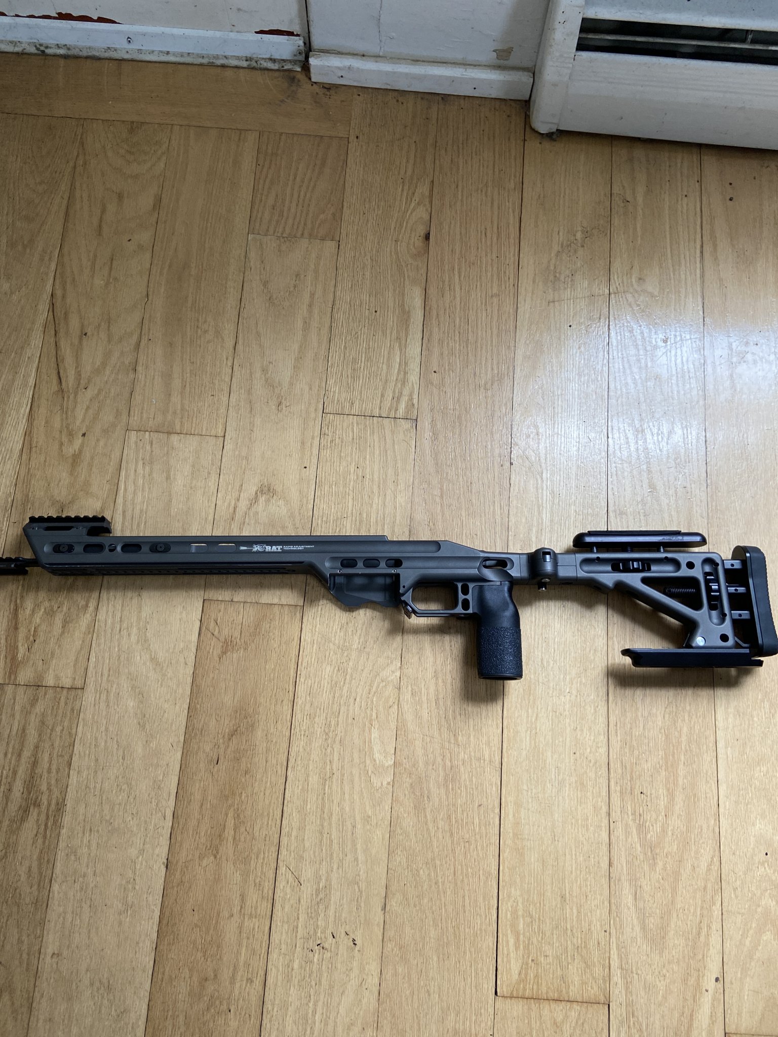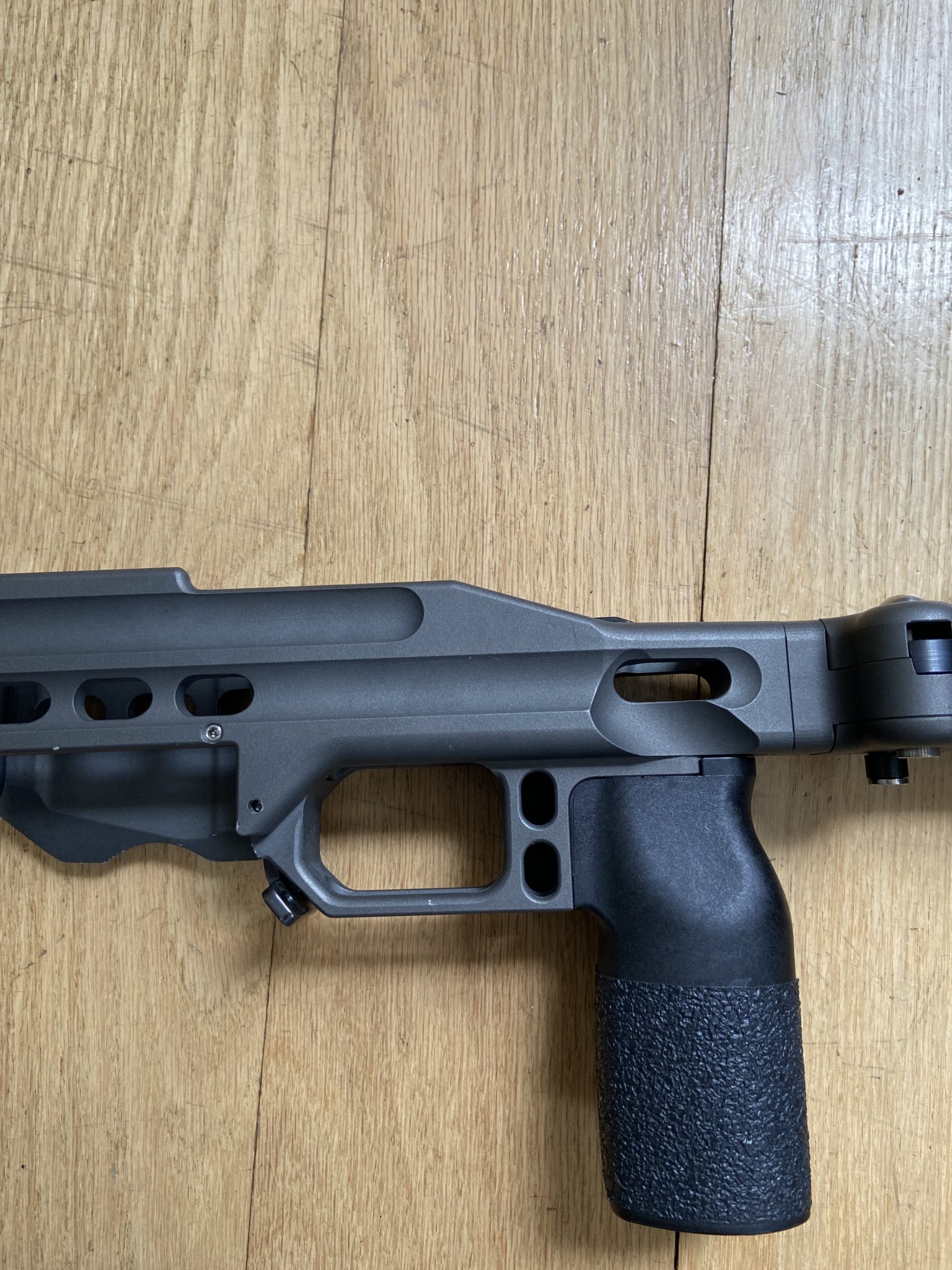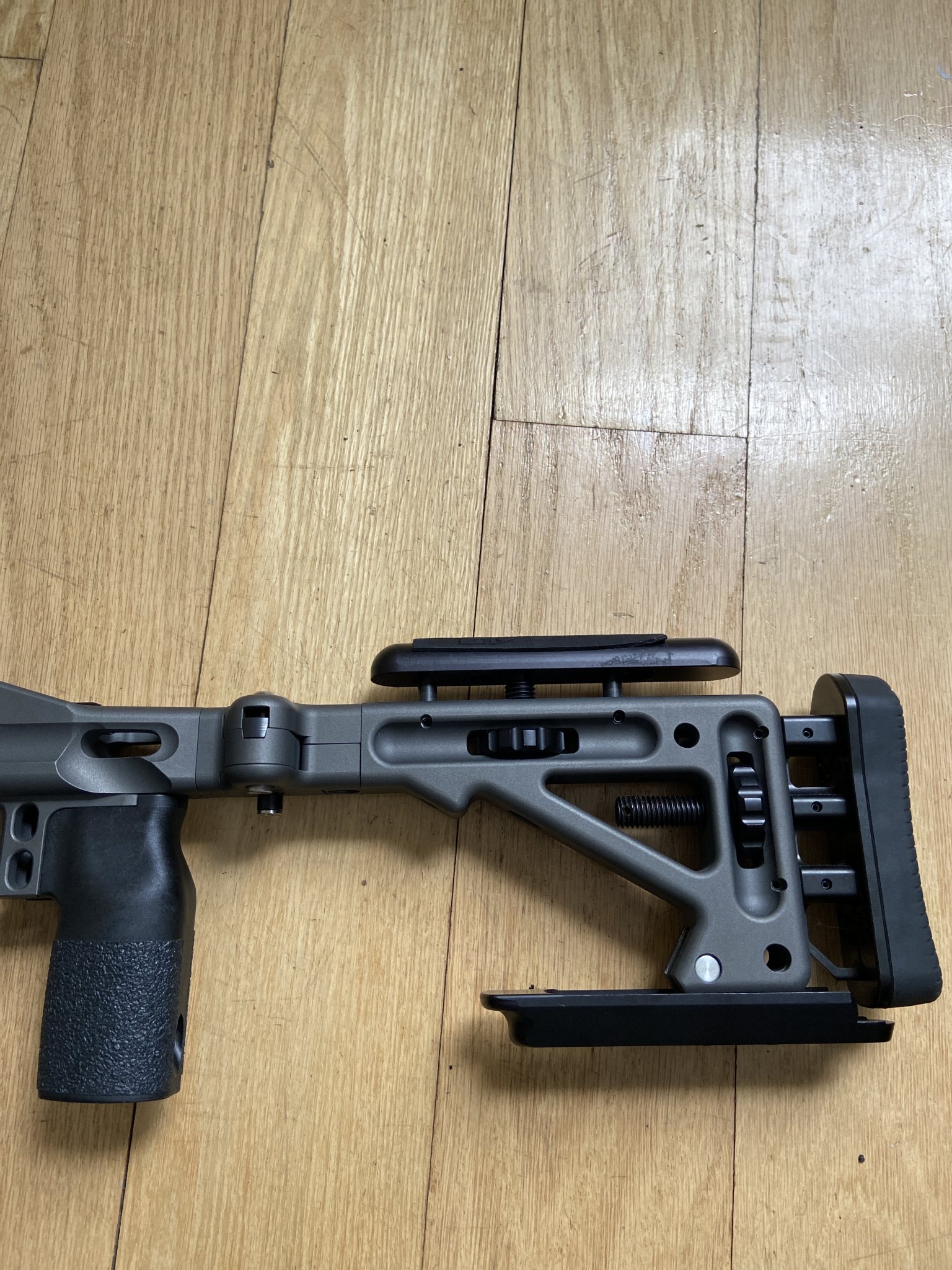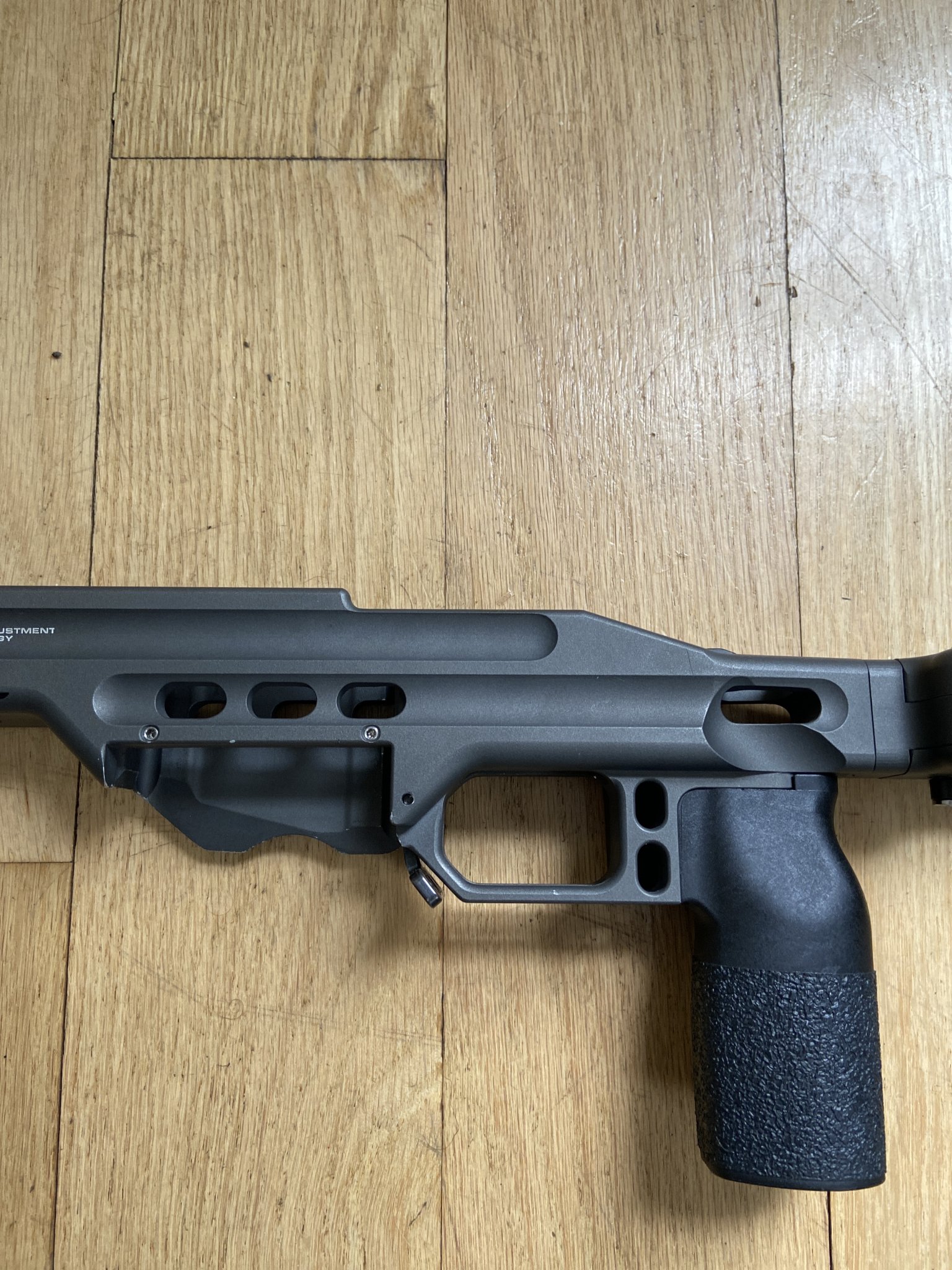 Have a Mpa Ba Comp chassis in Tungsten with factory castle cut and folding stock. Has aluminum bag rider and forward front weight. Only used in 3 matches. Has little rubs on arca rail as usual. Few small blemishes. Great shape 825 shipped.