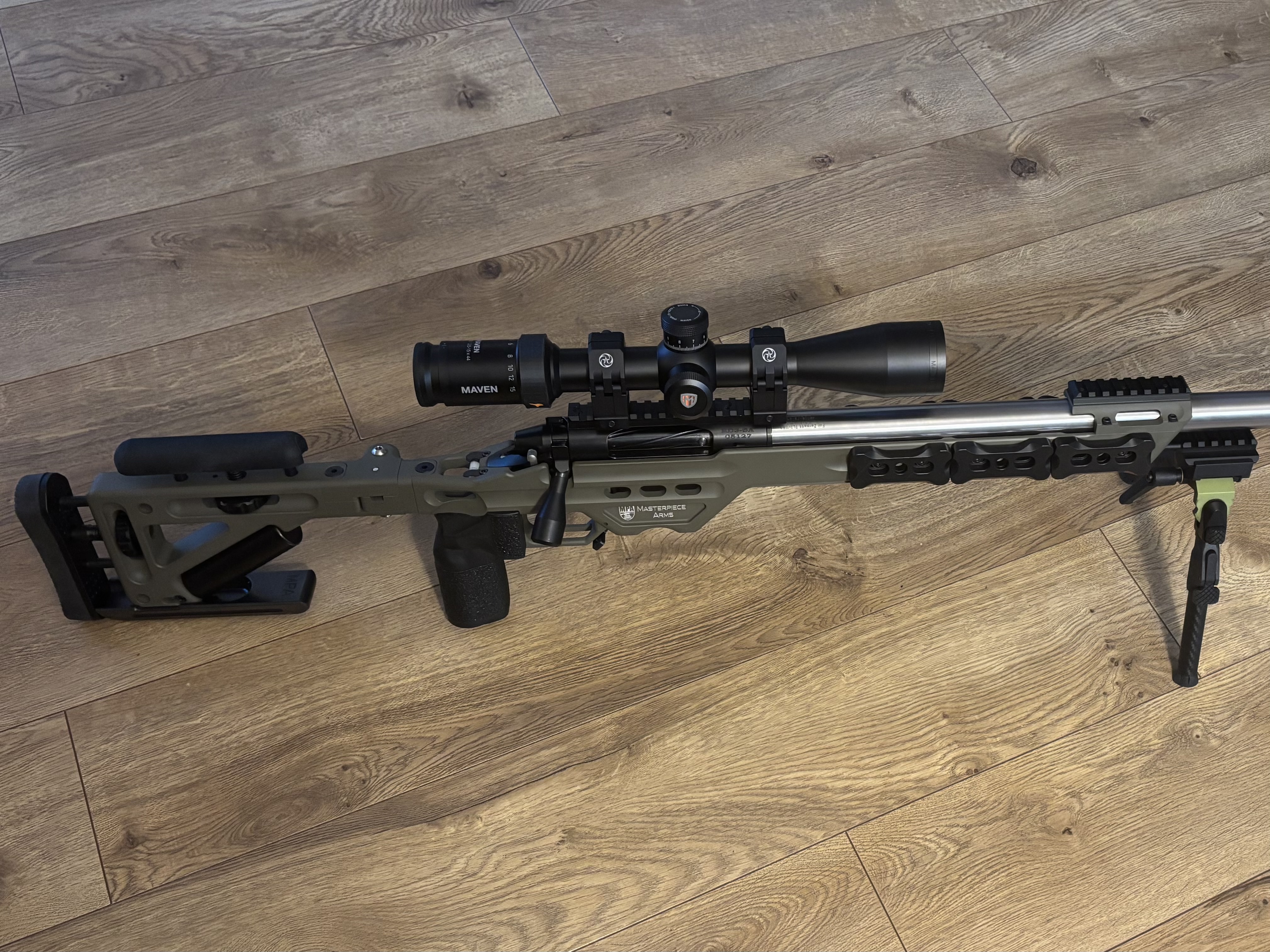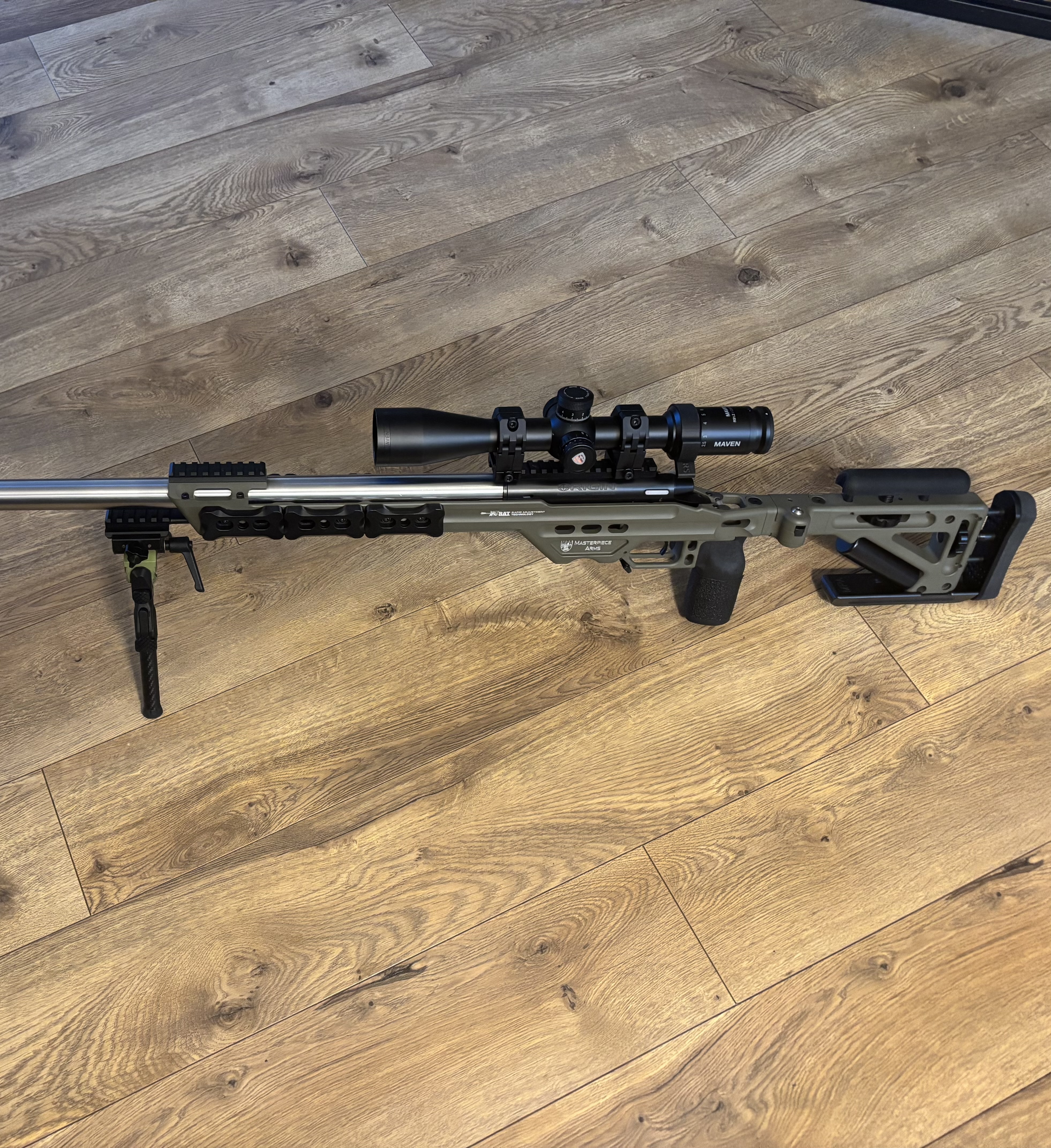Selling a new MPA BA Comp folding chassis in green. Has never been to the range, only mounted the barreled action in the picture.