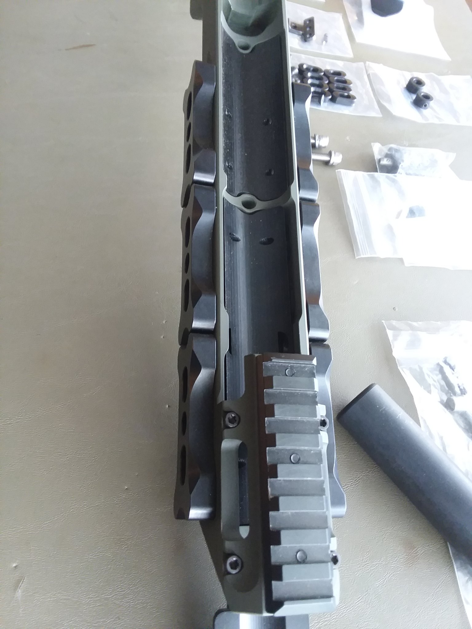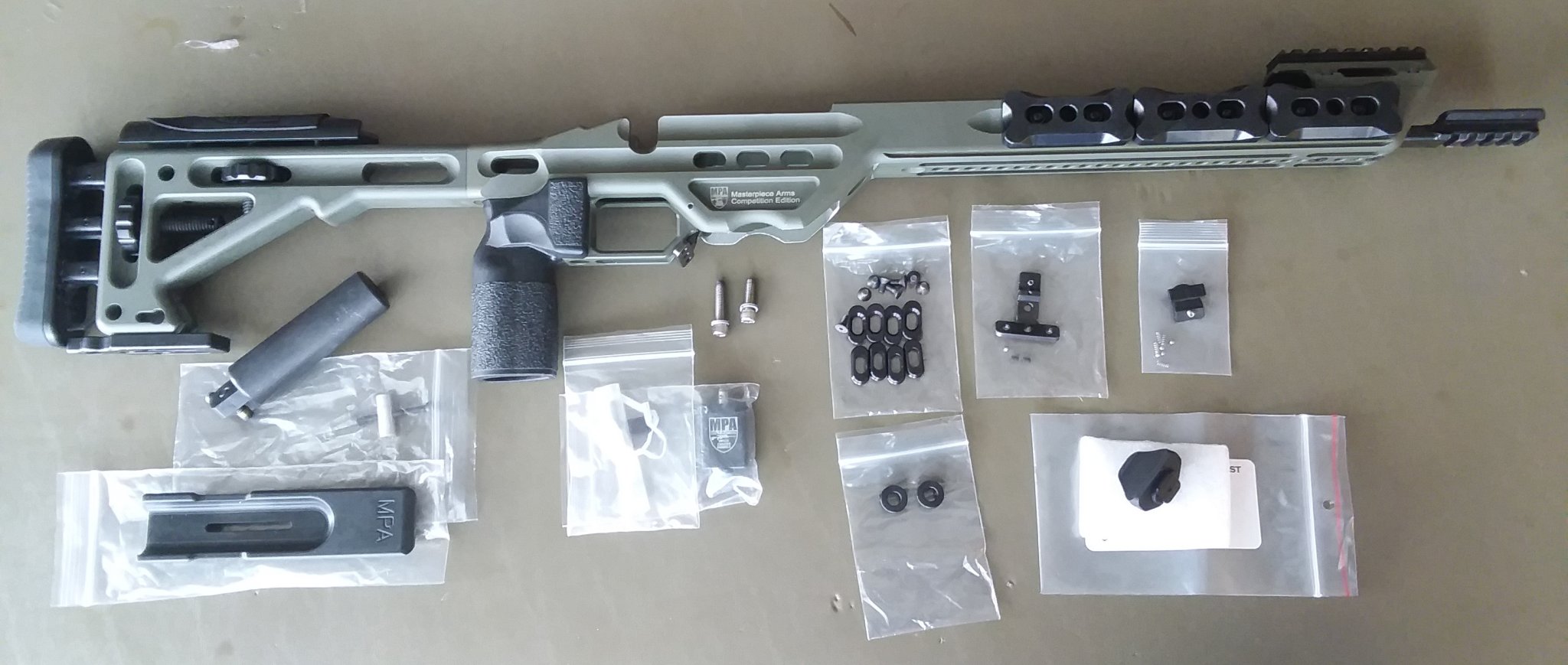 - All the original spare hardware including the little tab and spring to cover the opposite hand bolt handle inlet and eight fasteners/screws for accessories should you opt to remove the external weights.