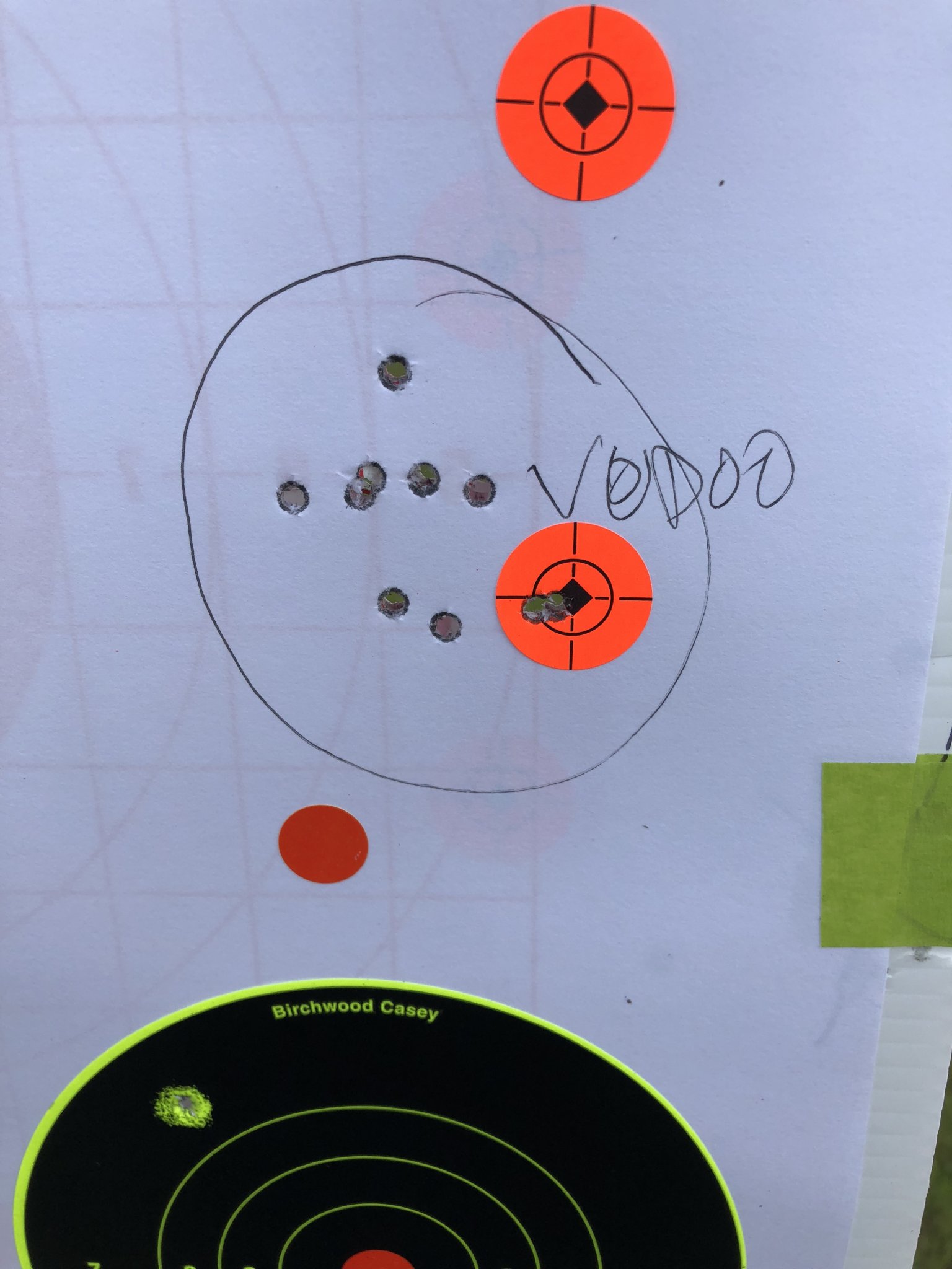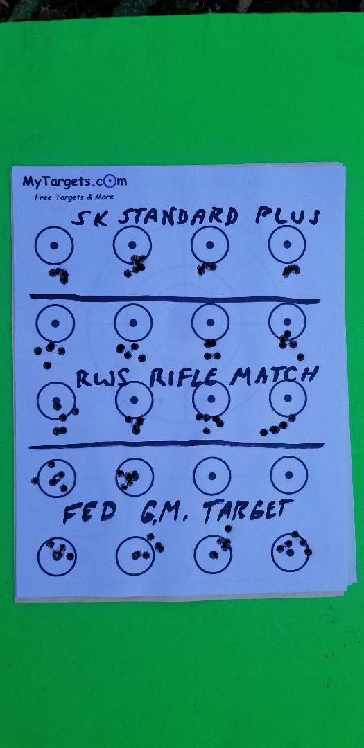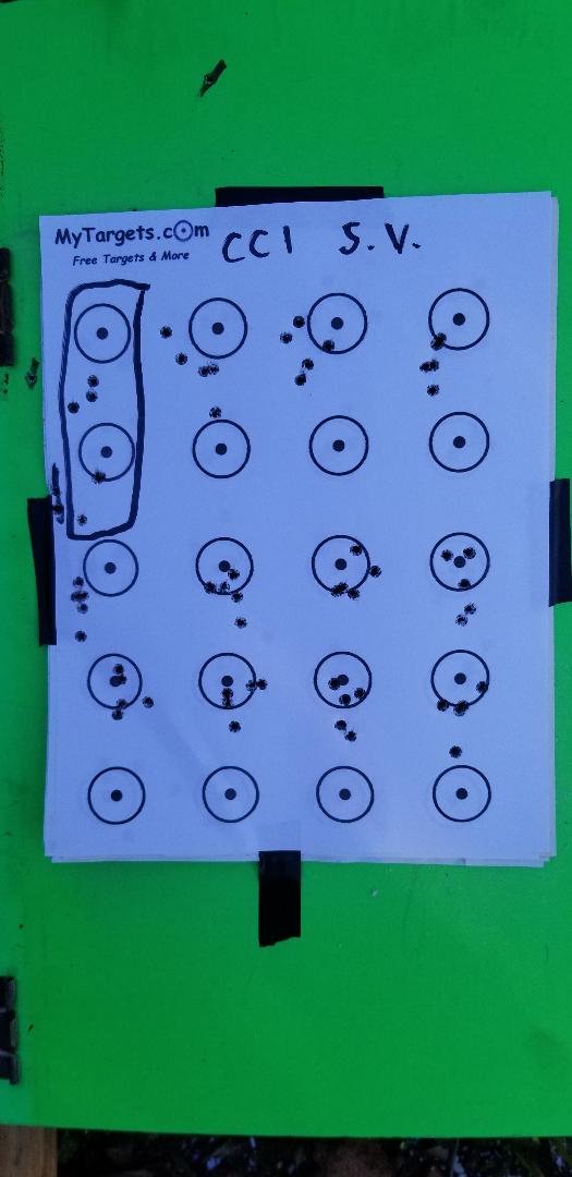 Again, I am new to the precision rimfire world, and I'm hoping the scatter of the shots is something I can fix (whether me or finding the right ammo. I'll post more group pics later. Average overall velocity was 1061 FPS (averaged across the 100 rounds).