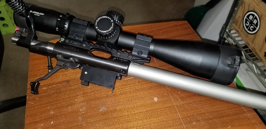 I'll tell you what I have, and answer any questions if I can. First of all, details on the rifle. Barrel is 18", Area 419 rail, trigger was set at the factory at 1 lb, 7 ounces, and an Athlon Ares 4.5-27 MOA scope on top held on with Burris Xtreme rings. I have an Atlas bipod holding it up. I learned that the trigger has a YoDave spring, but the trigger and surfaces themselves were polished at MPA for a better feel.