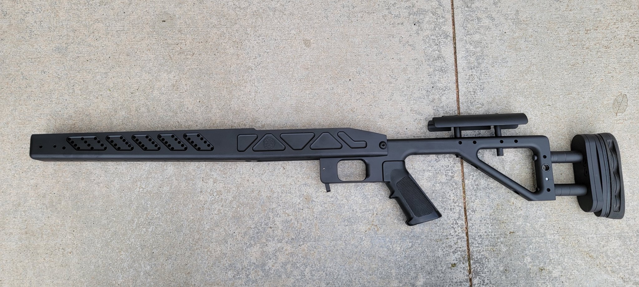 Tikka A6 stock. Adjustable LOP, adjustable cheek, Atlas bottom inlet (i believe). Never used.