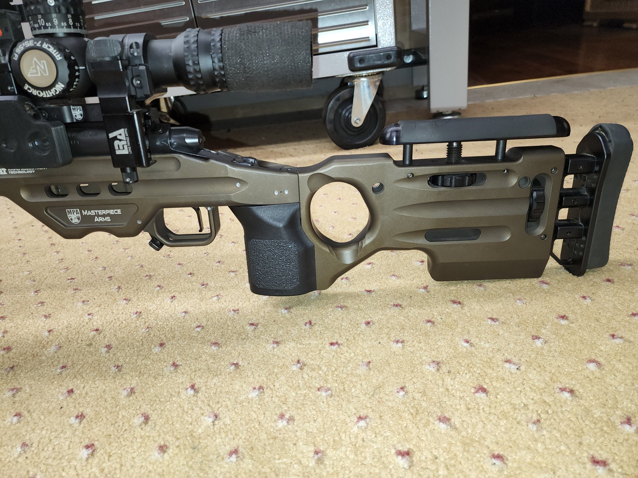 Purchased new Last spring for my vudoo. Unbedded R700/SA/RH. Great condition with a few light scratches as shown. Includes new thin cheek piece with original one as well. Action, scope, weights bipod, thumb rest ect NOT included. This is JUST for the chassis with 2 grips only. I do have the picatiny for the nv bridge and will include that. No trades, paypal friends and family. Shipping in CONUS only.