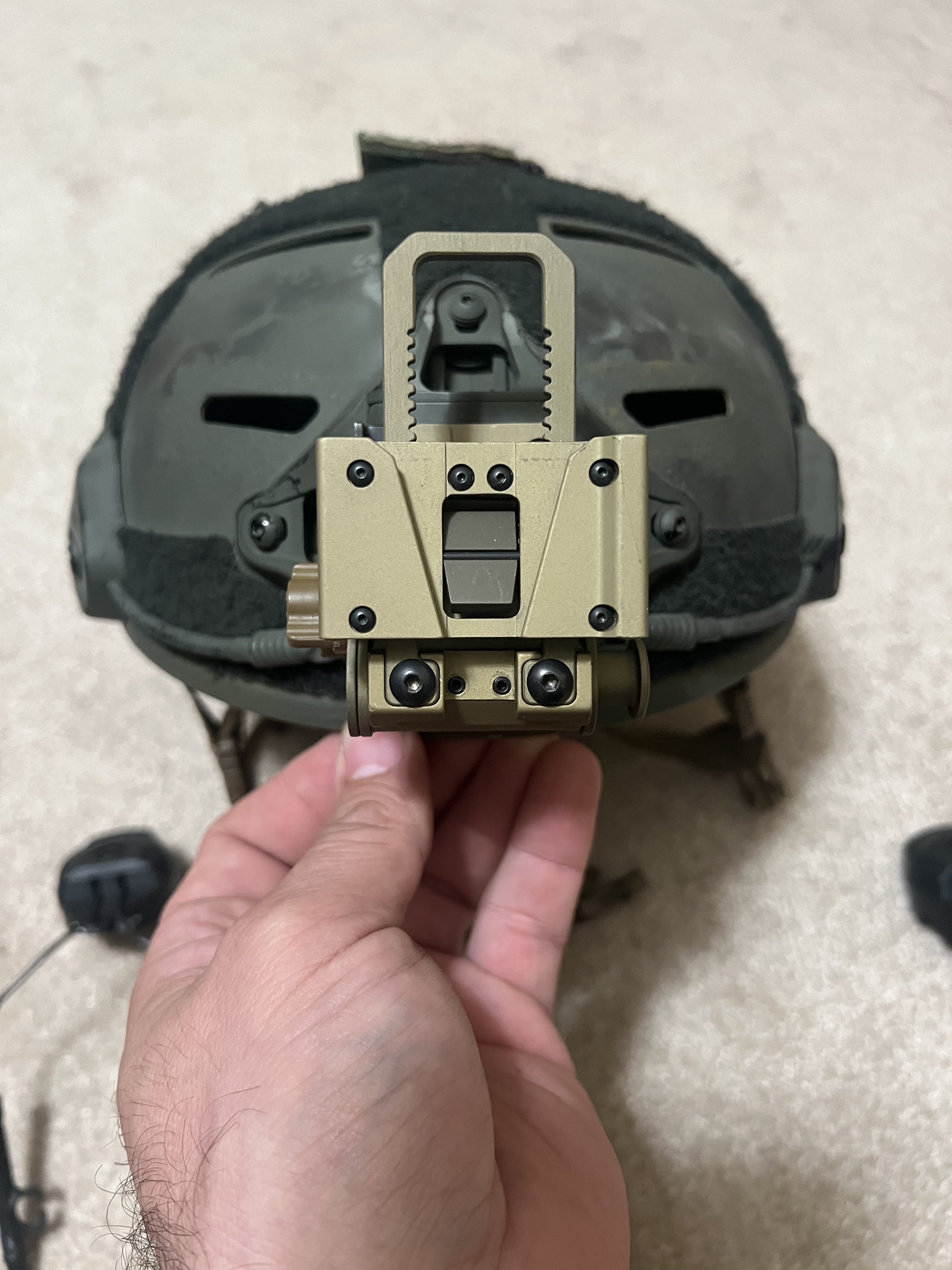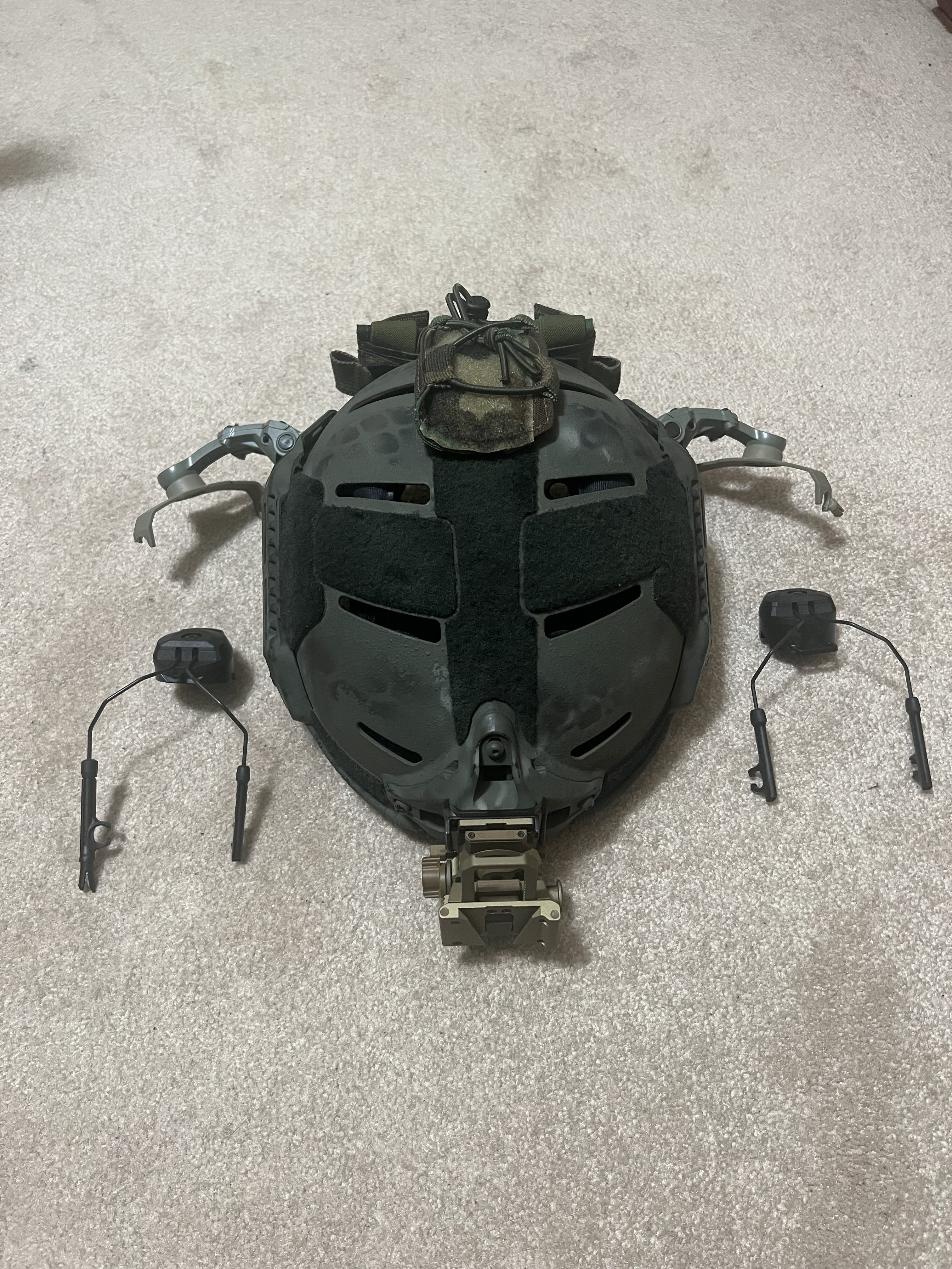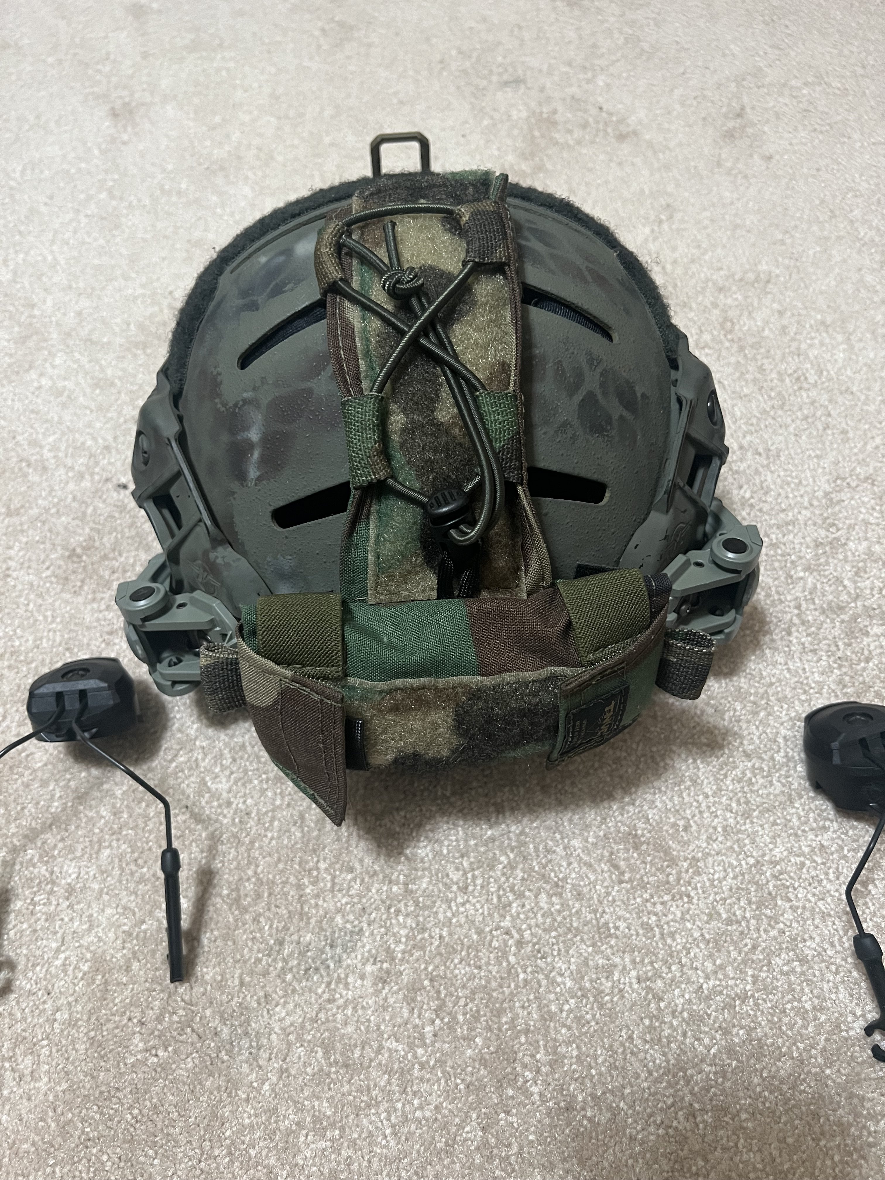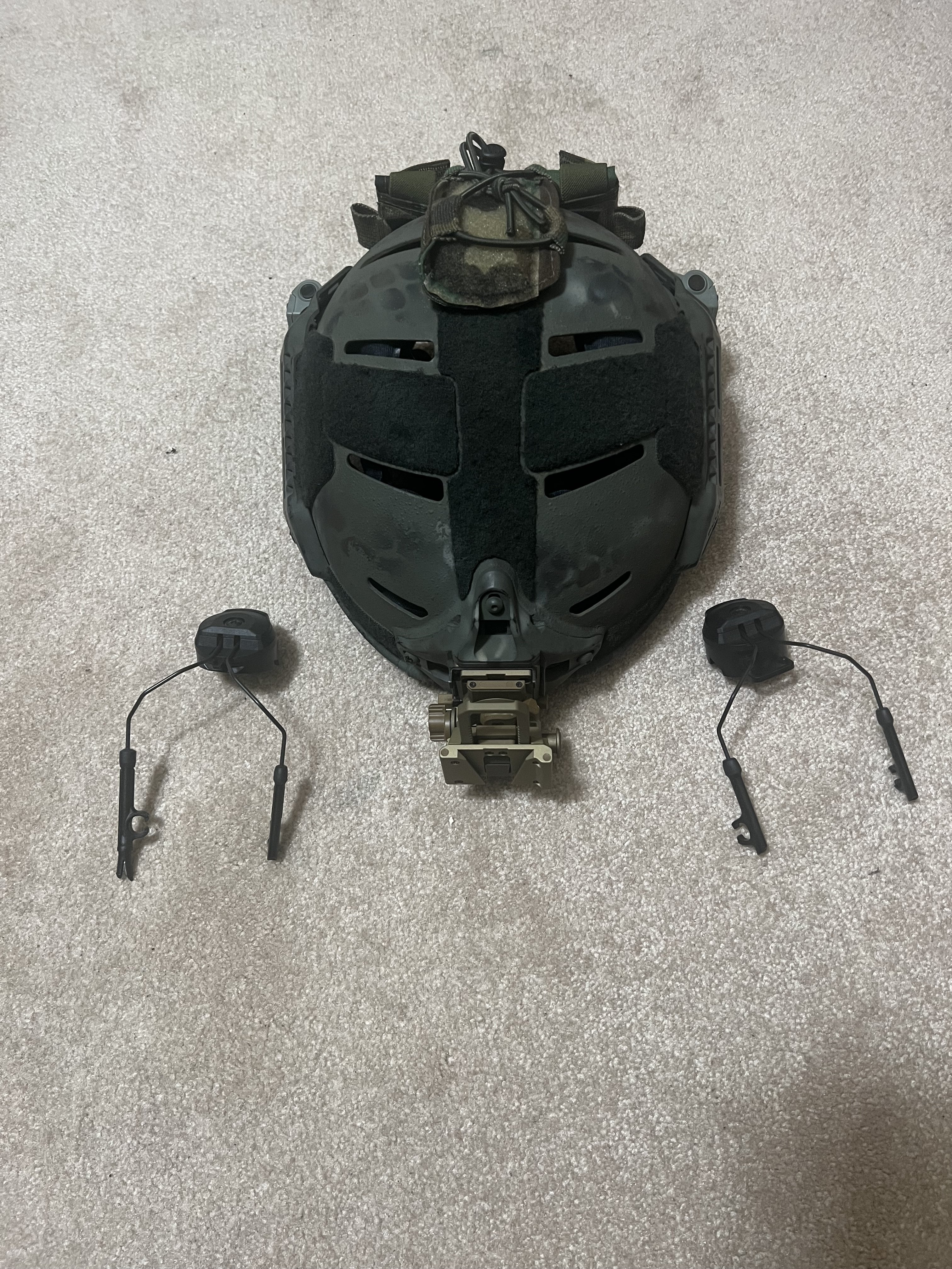 This is a package deal which includes the fluxliner size 1 padding kit, Wilcox G24 coyote mount, TNVC woodland battery/weight pack, Bifrost gear adapters articulating for your hearing needs and 3M Adapters.