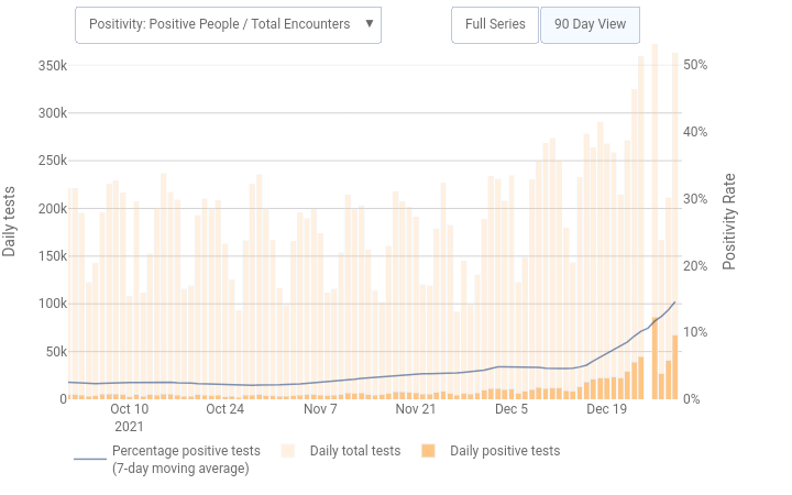New York testing by day, last 90 days. So they're now doing about 350,000 tests per day. And it's a surprise "cases" are going up?