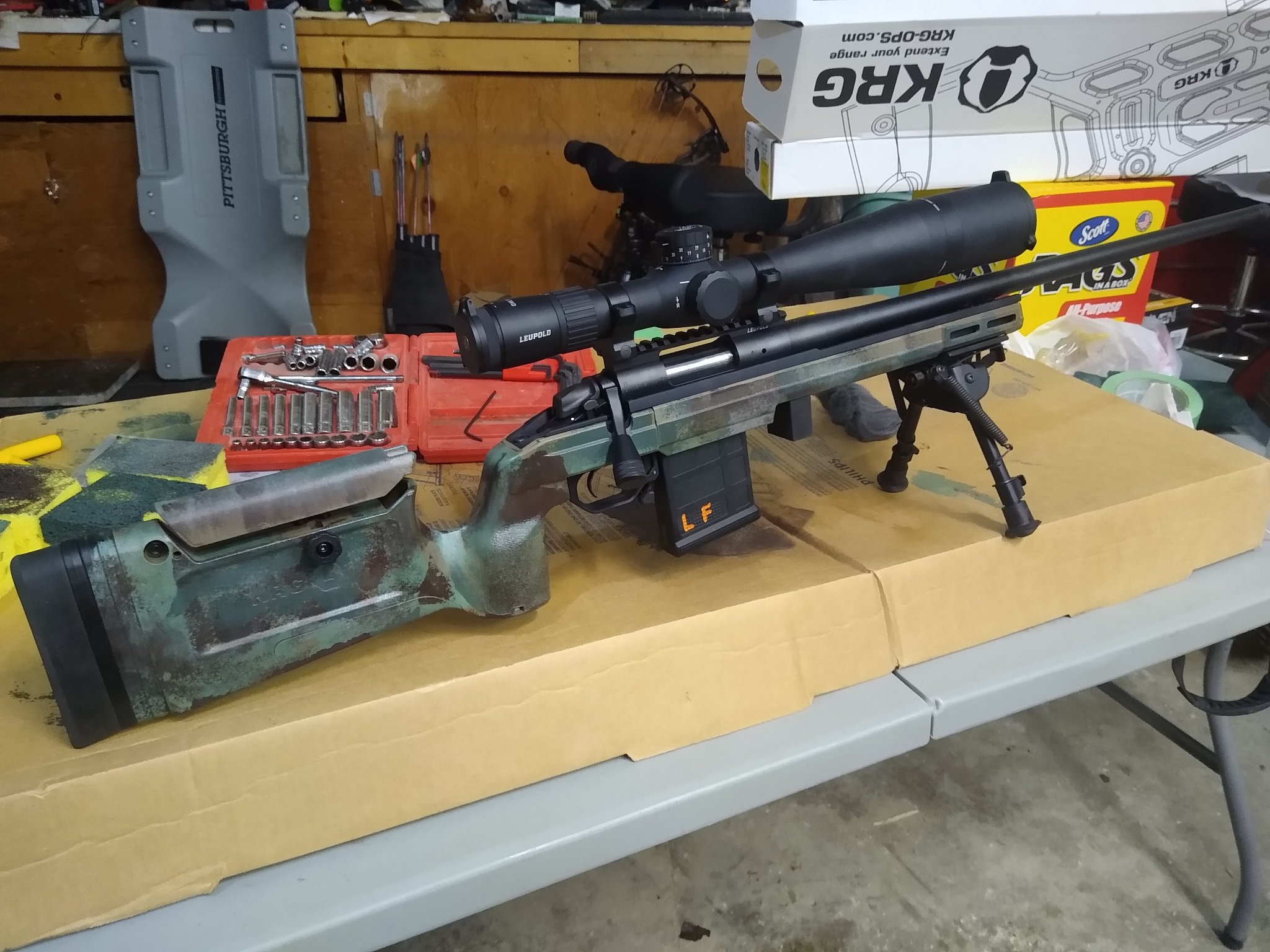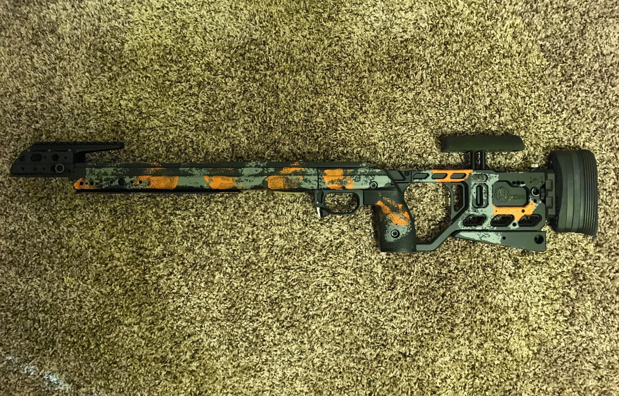 Somehow, I missed your photo when I scanned this thread the first time. You have a Bravo stock also, and the camo paint is awesome! Can't believe the kids did such a great job! Has that kind of worn in look to it.