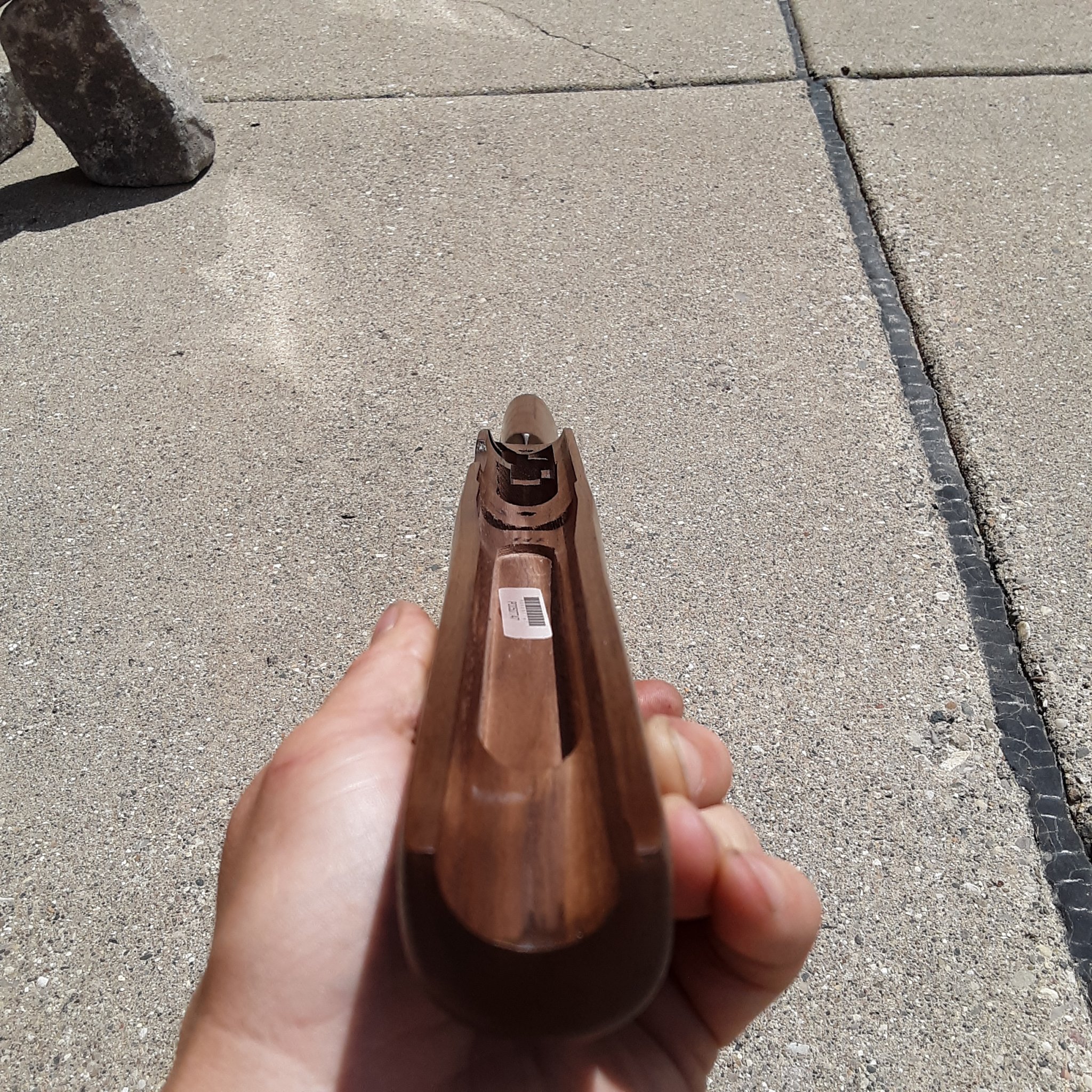 I totally understand all the differences between this stock and the real deal, but I'm not paying 500-900 for a wood stock, sorry. In my opinion no wood stocks worth over 300 dollars. I can get an HS Precision for 269 and be much better off. Amongst the obvious differences are the finish (this one came much nicer than the factory M40, but they come unfinished as well), the two black dots on the side, (I'm assuming they're crossbolts for strength?) the nicer buttpad, slightly different pistol grip geometry, and the comb's pointed at a slight downwards angle whereas the real deal is more parallel to the ground.