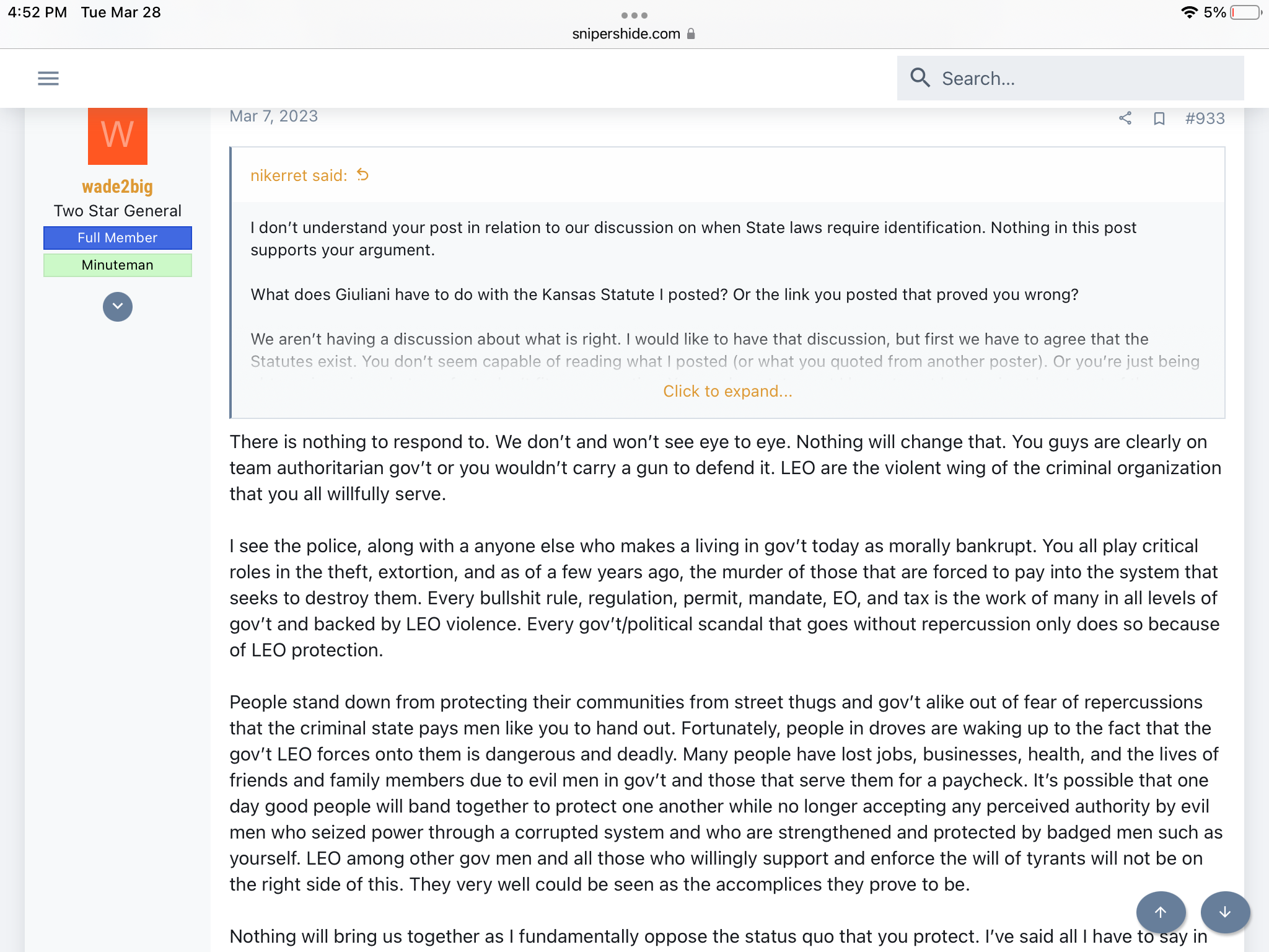 This isn’t the thread for this conversation but you tagged me while mischaracterizing me so I’ll respond. I’ve never challenged the intentions of every LEO as you state. Everything I’ve ever said about the role police play while serving and protecting a corrupt gov’t can be and is true regardless of the individual officer’s personal beliefs. All are tasked with protecting the status quo and forcing the will of politicians regardless of whether they are aware of this or not.